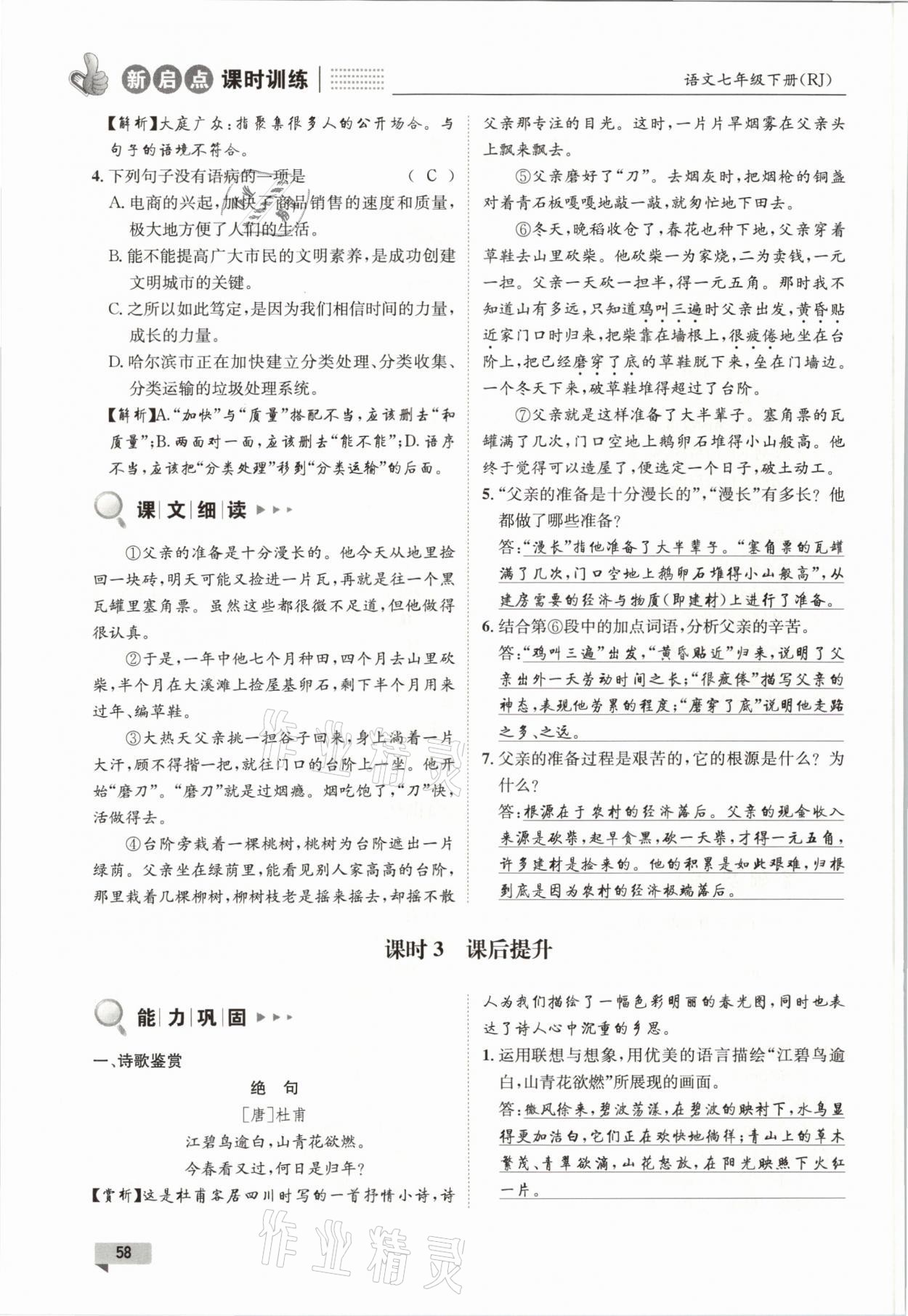 2021年新启点课时训练七年级语文下册人教版