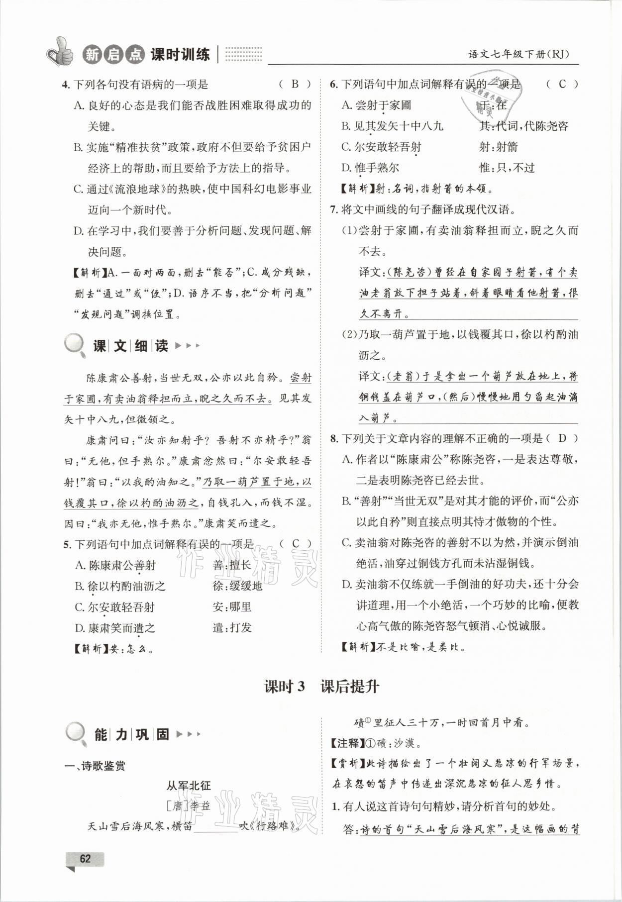 注:目前有些书本章节名称可能整理的还不是很完善,但都是按照顺序排列的,请同学们按照顺序仔细查找。练习册 2021年新启点课时训练七年级语文下册人教版 答案主要是用来给同学们做完题方便对答案用的,请勿直接抄袭。