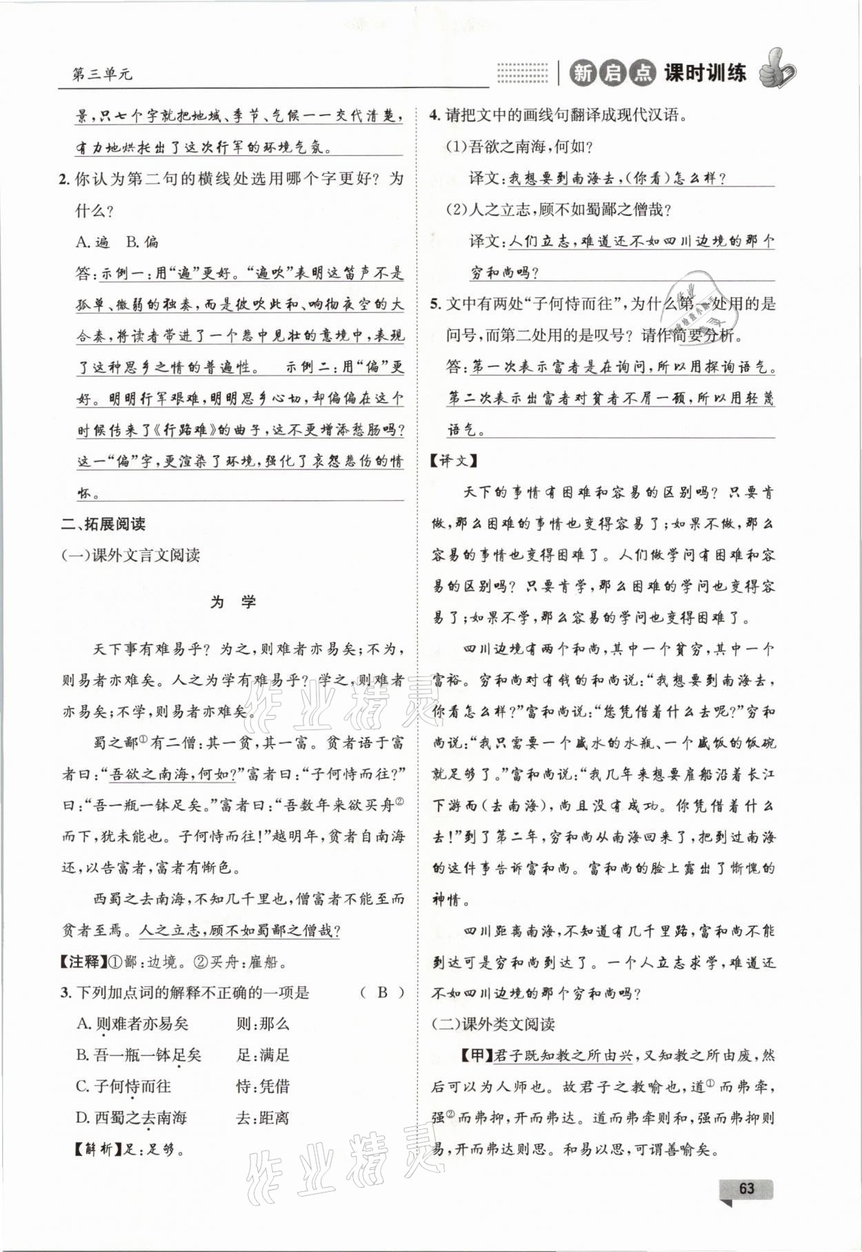 注:目前有些书本章节名称可能整理的还不是很完善,但都是按照顺序排列的,请同学们按照顺序仔细查找。练习册 2021年新启点课时训练七年级语文下册人教版 答案主要是用来给同学们做完题方便对答案用的,请勿直接抄袭。