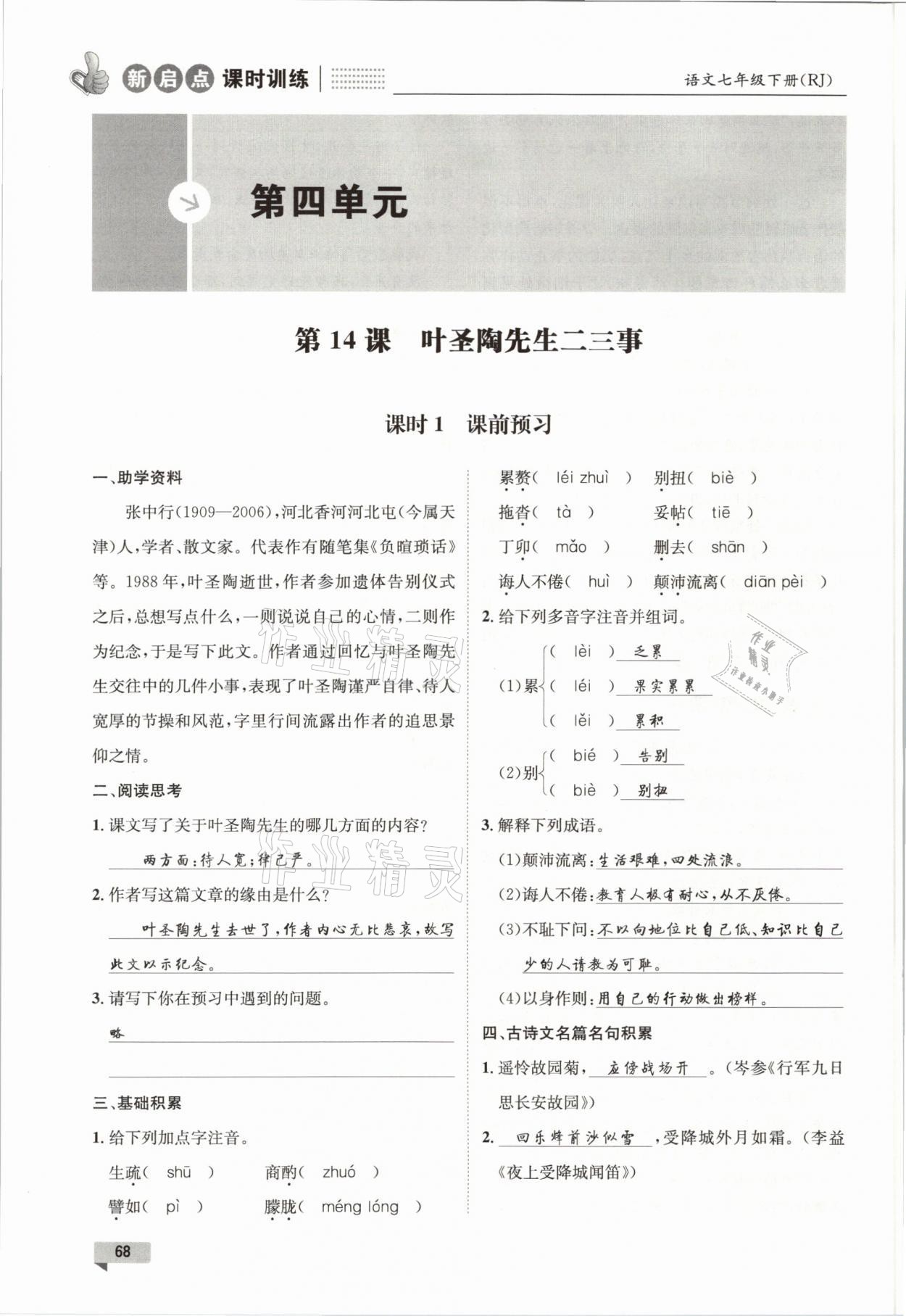 注:目前有些书本章节名称可能整理的还不是很完善,但都是按照顺序排列的,请同学们按照顺序仔细查找。练习册 2021年新启点课时训练七年级语文下册人教版 答案主要是用来给同学们做完题方便对答案用的,请勿直接抄袭。