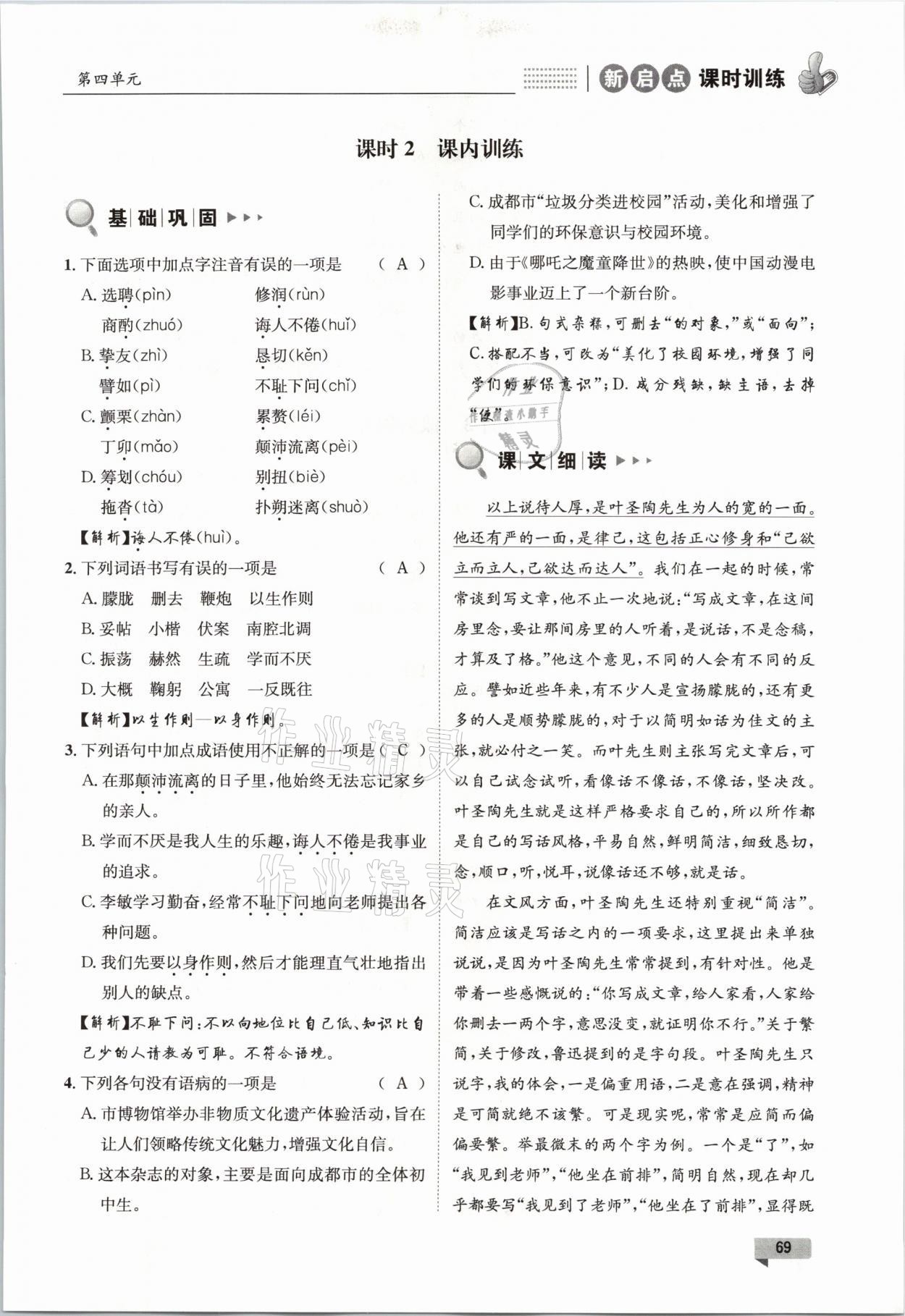 注:目前有些书本章节名称可能整理的还不是很完善,但都是按照顺序排列的,请同学们按照顺序仔细查找。练习册 2021年新启点课时训练七年级语文下册人教版 答案主要是用来给同学们做完题方便对答案用的,请勿直接抄袭。