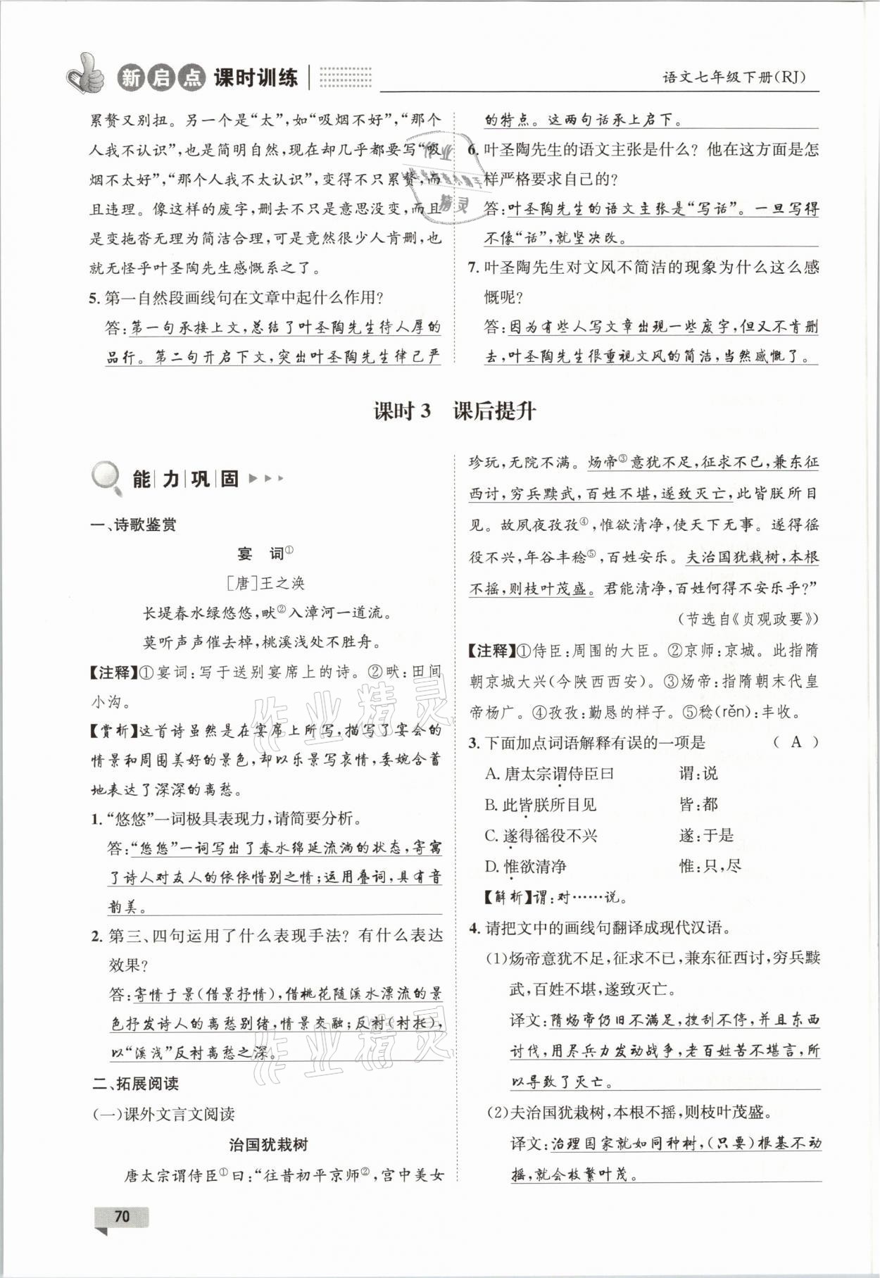 注:目前有些书本章节名称可能整理的还不是很完善,但都是按照顺序排列的,请同学们按照顺序仔细查找。练习册 2021年新启点课时训练七年级语文下册人教版 答案主要是用来给同学们做完题方便对答案用的,请勿直接抄袭。