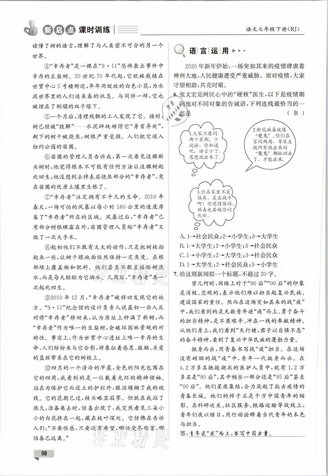 注:目前有些书本章节名称可能整理的还不是很完善,但都是按照顺序排列的,请同学们按照顺序仔细查找。练习册 2021年新启点课时训练七年级语文下册人教版 答案主要是用来给同学们做完题方便对答案用的,请勿直接抄袭。