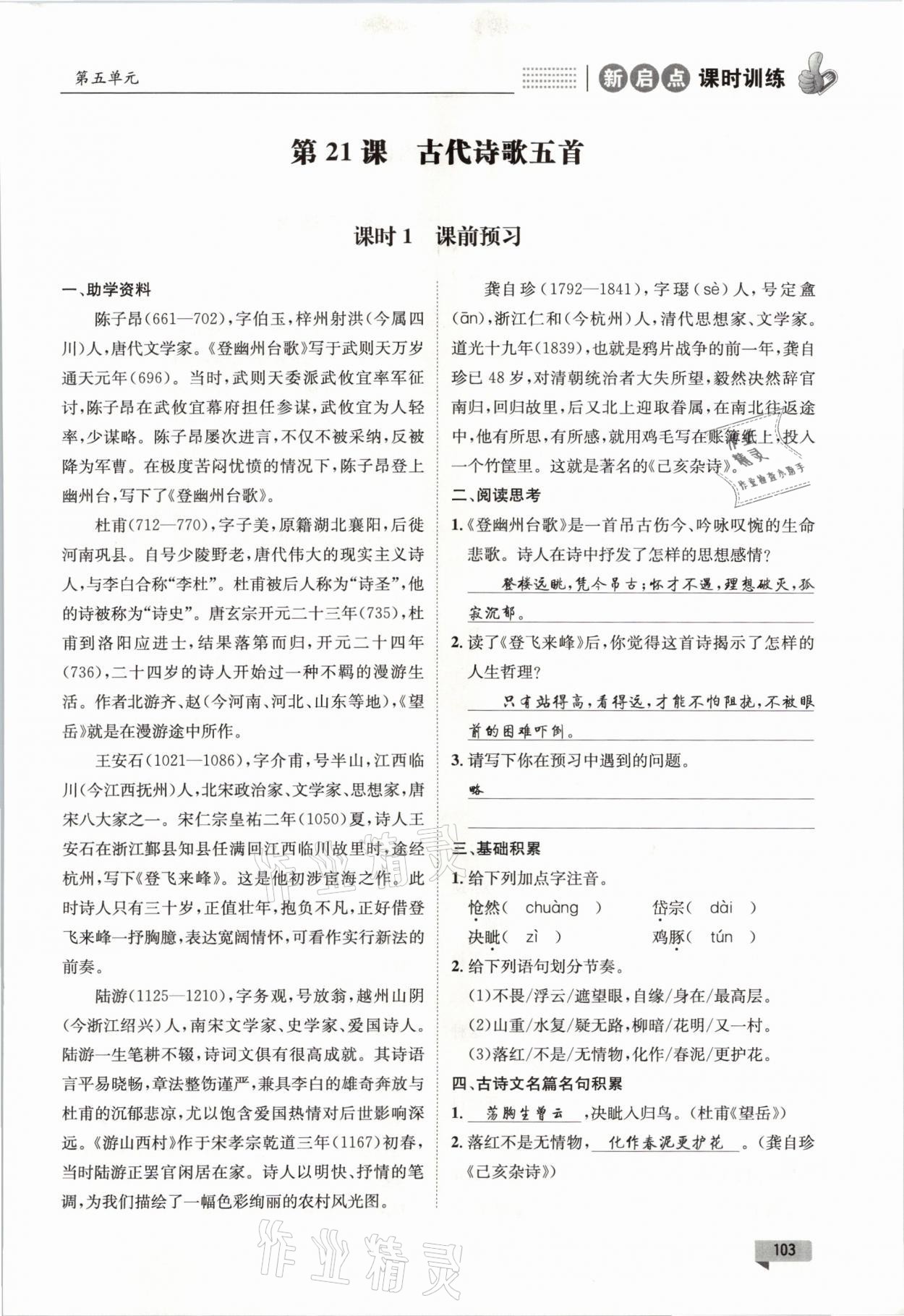 注:目前有些书本章节名称可能整理的还不是很完善,但都是按照顺序排列的,请同学们按照顺序仔细查找。练习册 2021年新启点课时训练七年级语文下册人教版 答案主要是用来给同学们做完题方便对答案用的,请勿直接抄袭。