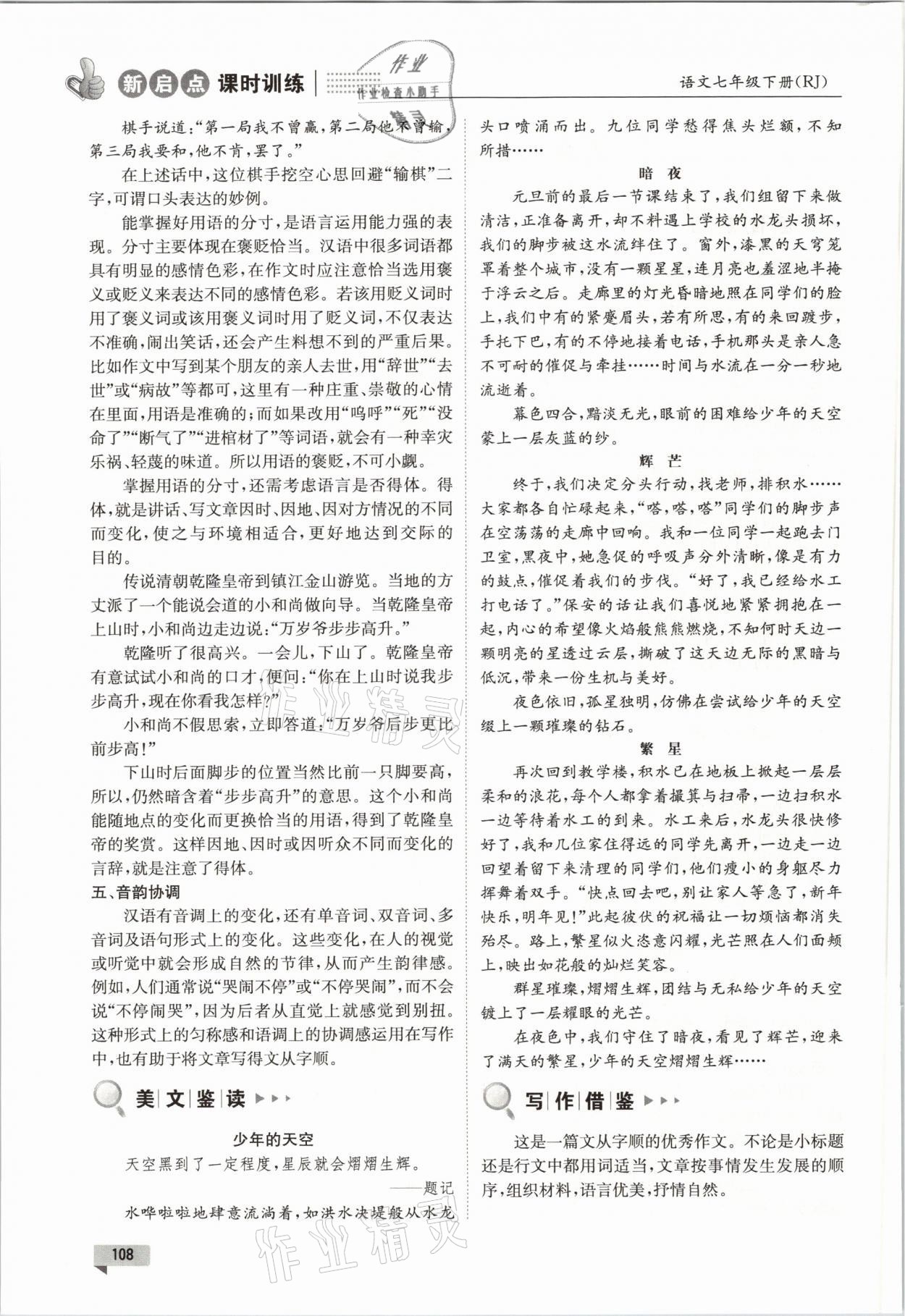注:目前有些书本章节名称可能整理的还不是很完善,但都是按照顺序排列的,请同学们按照顺序仔细查找。练习册 2021年新启点课时训练七年级语文下册人教版 答案主要是用来给同学们做完题方便对答案用的,请勿直接抄袭。