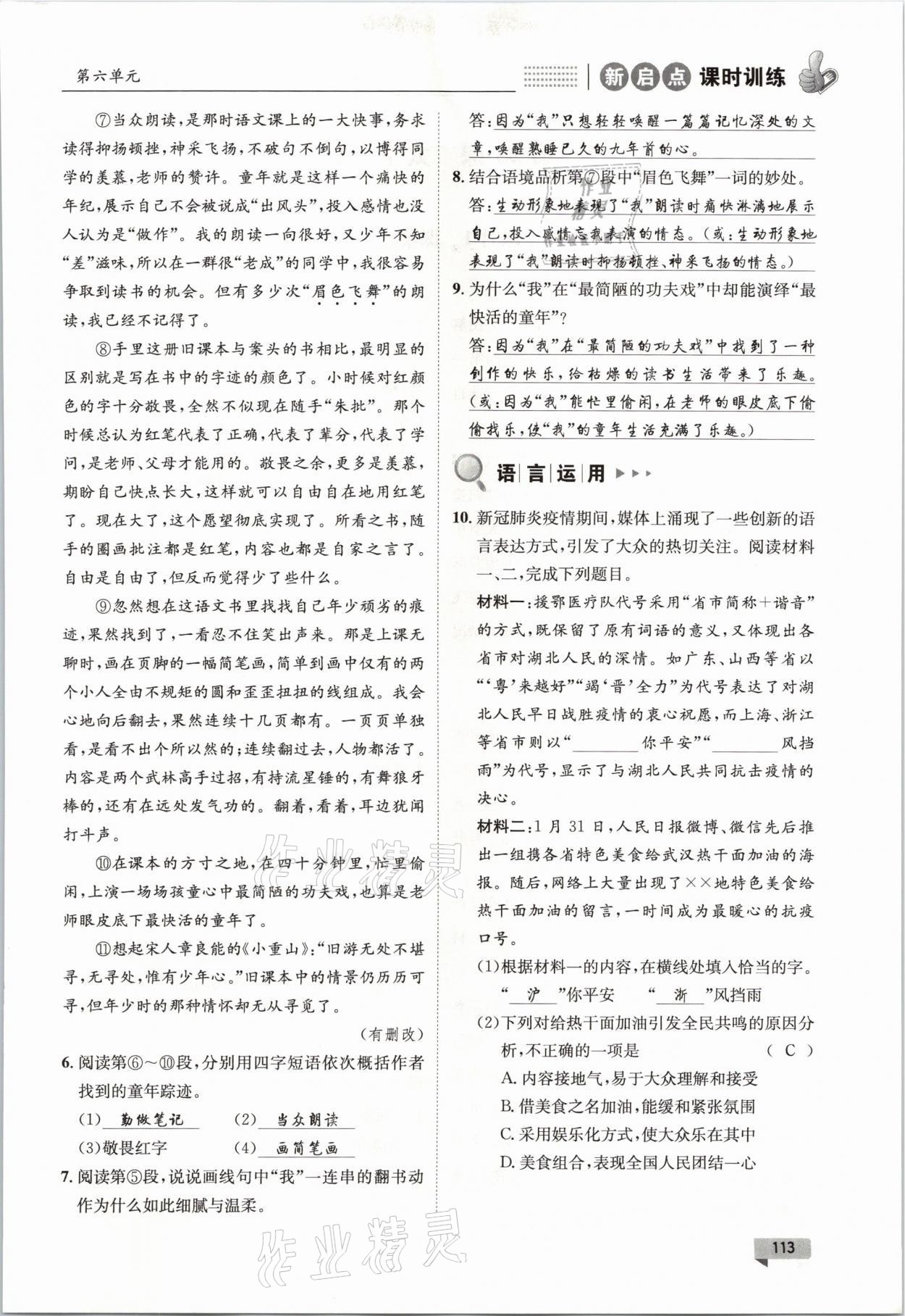 注:目前有些书本章节名称可能整理的还不是很完善,但都是按照顺序排列的,请同学们按照顺序仔细查找。练习册 2021年新启点课时训练七年级语文下册人教版 答案主要是用来给同学们做完题方便对答案用的,请勿直接抄袭。