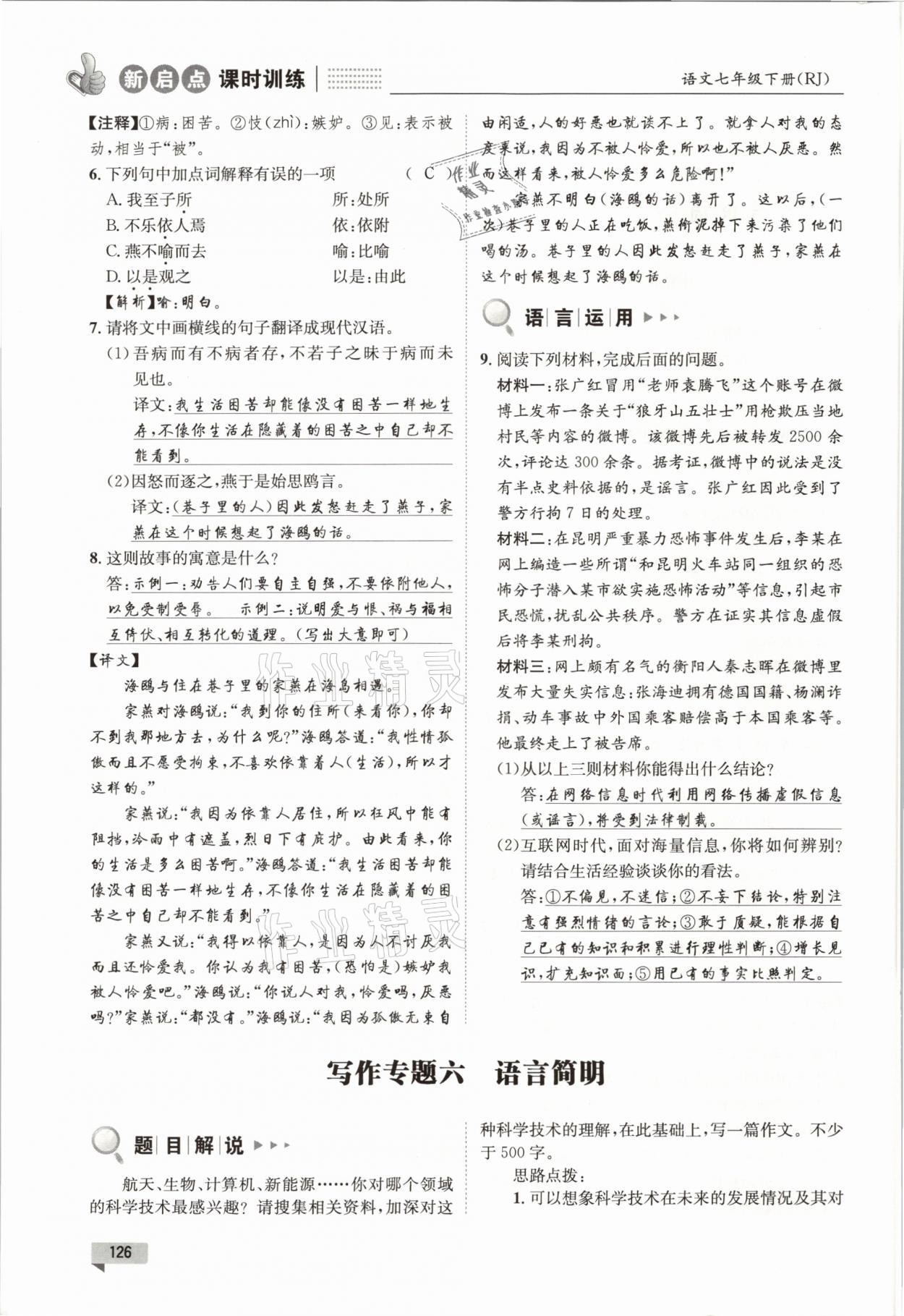 注:目前有些书本章节名称可能整理的还不是很完善,但都是按照顺序排列的,请同学们按照顺序仔细查找。练习册 2021年新启点课时训练七年级语文下册人教版 答案主要是用来给同学们做完题方便对答案用的,请勿直接抄袭。
