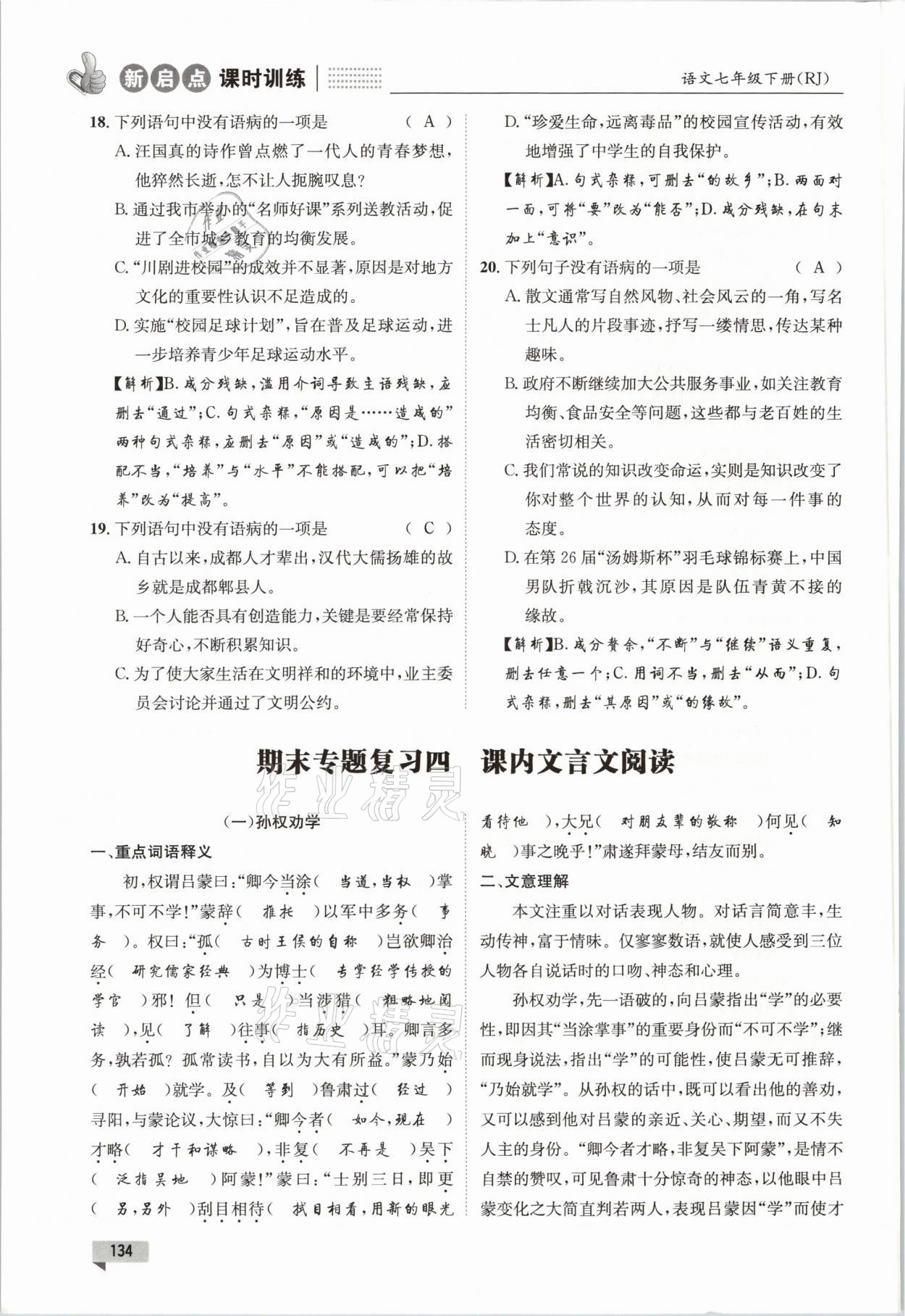 注:目前有些书本章节名称可能整理的还不是很完善,但都是按照顺序排列的,请同学们按照顺序仔细查找。练习册 2021年新启点课时训练七年级语文下册人教版 答案主要是用来给同学们做完题方便对答案用的,请勿直接抄袭。