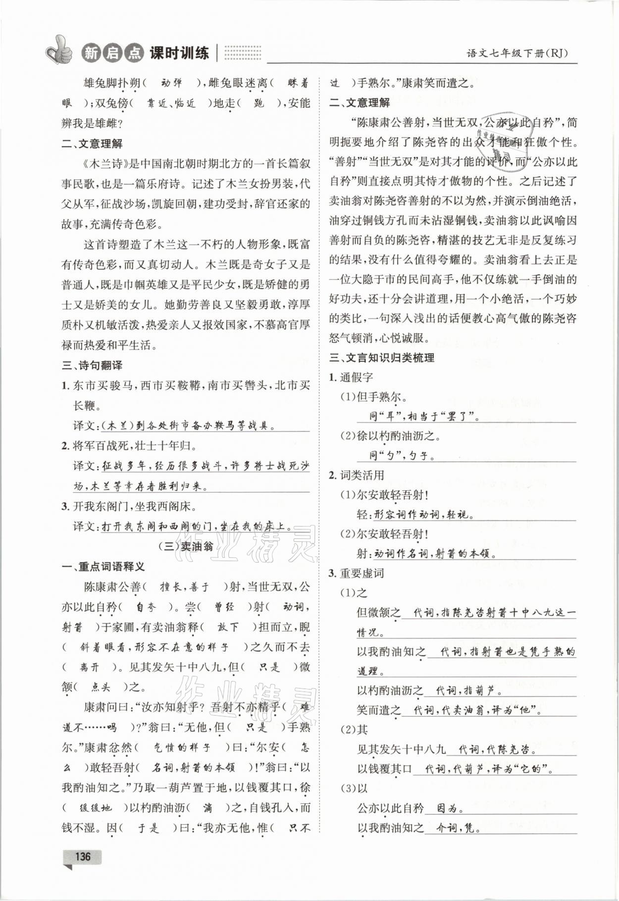 注:目前有些书本章节名称可能整理的还不是很完善,但都是按照顺序排列的,请同学们按照顺序仔细查找。练习册 2021年新启点课时训练七年级语文下册人教版 答案主要是用来给同学们做完题方便对答案用的,请勿直接抄袭。