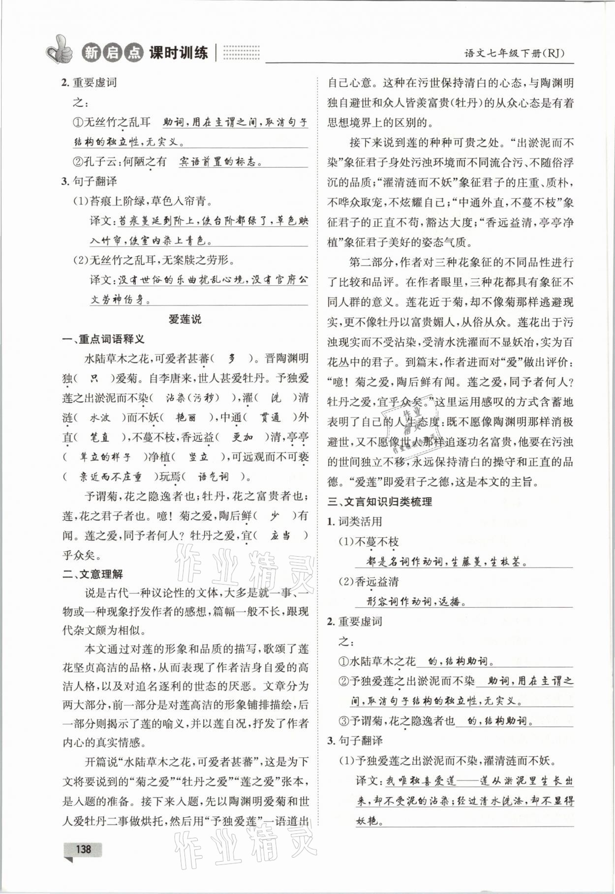 注:目前有些书本章节名称可能整理的还不是很完善,但都是按照顺序排列的,请同学们按照顺序仔细查找。练习册 2021年新启点课时训练七年级语文下册人教版 答案主要是用来给同学们做完题方便对答案用的,请勿直接抄袭。