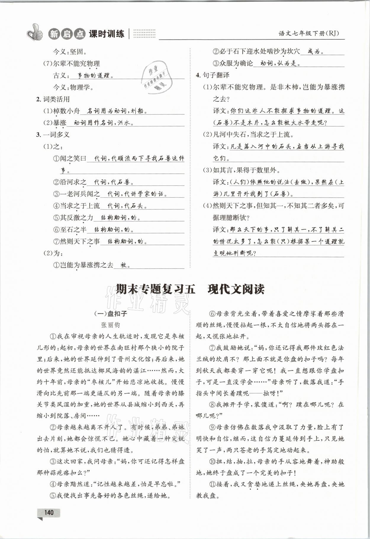 注:目前有些书本章节名称可能整理的还不是很完善,但都是按照顺序排列的,请同学们按照顺序仔细查找。练习册 2021年新启点课时训练七年级语文下册人教版 答案主要是用来给同学们做完题方便对答案用的,请勿直接抄袭。