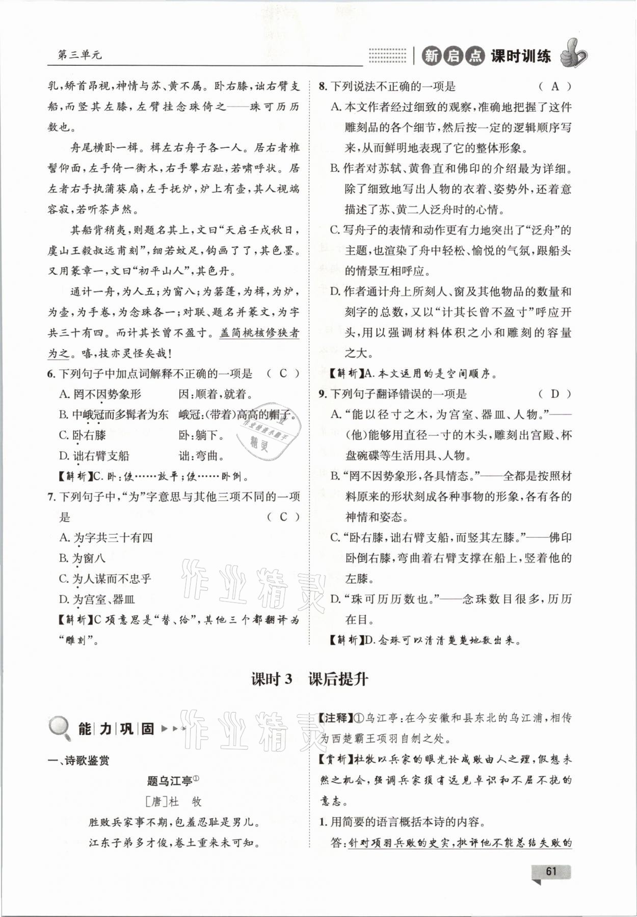 注:目前有些书本章节名称可能整理的还不是很完善,但都是按照顺序排列的,请同学们按照顺序仔细查找。练习册 2021年新启点课时训练八年级语文下册人教版 答案主要是用来给同学们做完题方便对答案用的,请勿直接抄袭。
