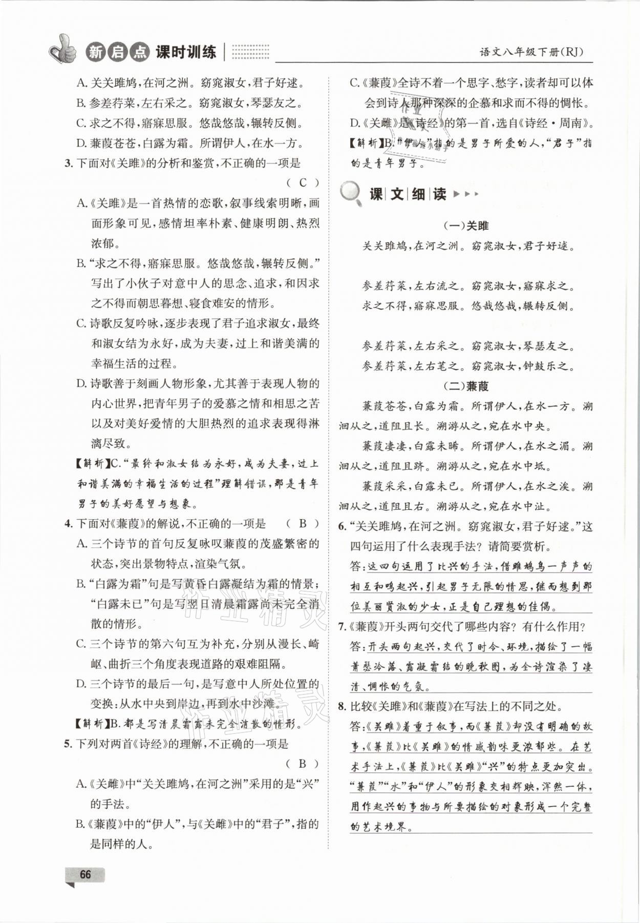 注:目前有些书本章节名称可能整理的还不是很完善,但都是按照顺序排列的,请同学们按照顺序仔细查找。练习册 2021年新启点课时训练八年级语文下册人教版 答案主要是用来给同学们做完题方便对答案用的,请勿直接抄袭。