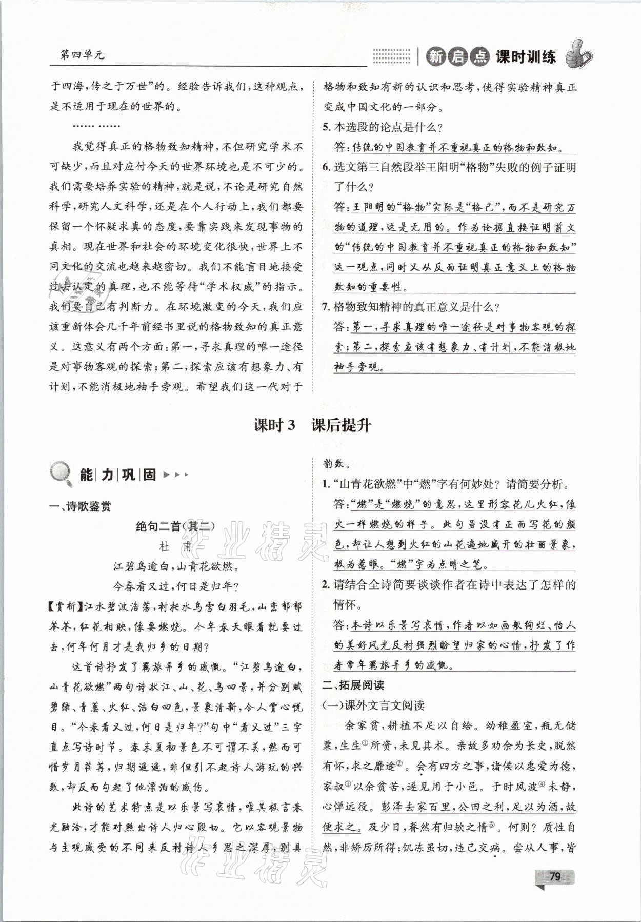 注:目前有些书本章节名称可能整理的还不是很完善,但都是按照顺序排列的,请同学们按照顺序仔细查找。练习册 2021年新启点课时训练八年级语文下册人教版 答案主要是用来给同学们做完题方便对答案用的,请勿直接抄袭。
