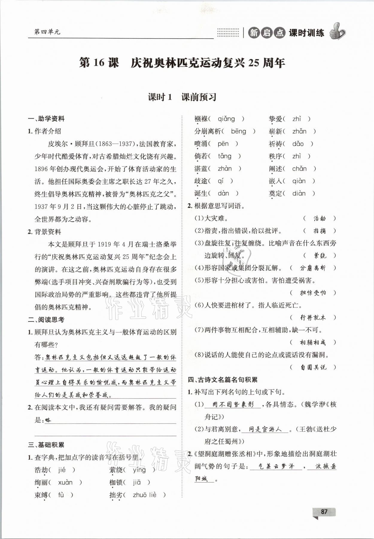 注:目前有些书本章节名称可能整理的还不是很完善,但都是按照顺序排列的,请同学们按照顺序仔细查找。练习册 2021年新启点课时训练八年级语文下册人教版 答案主要是用来给同学们做完题方便对答案用的,请勿直接抄袭。