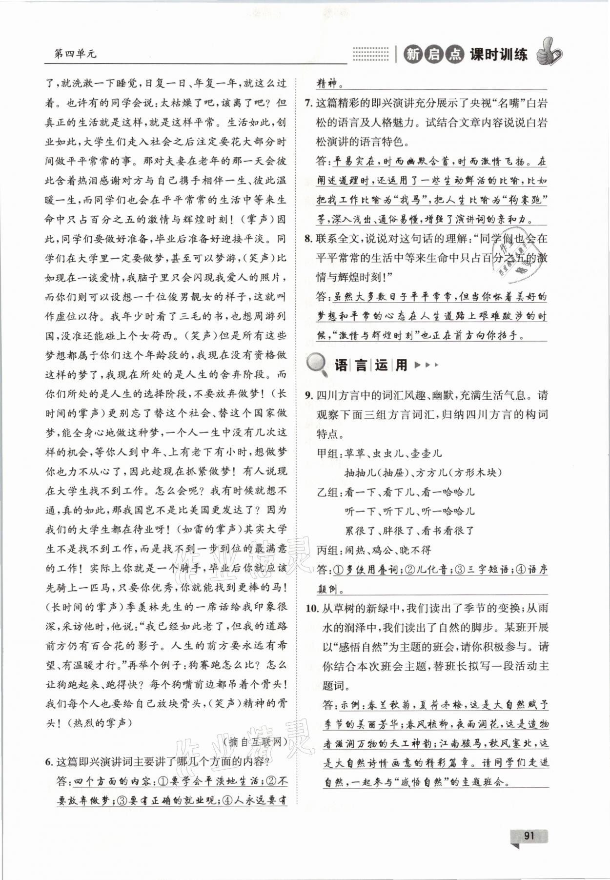 注:目前有些书本章节名称可能整理的还不是很完善,但都是按照顺序排列的,请同学们按照顺序仔细查找。练习册 2021年新启点课时训练八年级语文下册人教版 答案主要是用来给同学们做完题方便对答案用的,请勿直接抄袭。