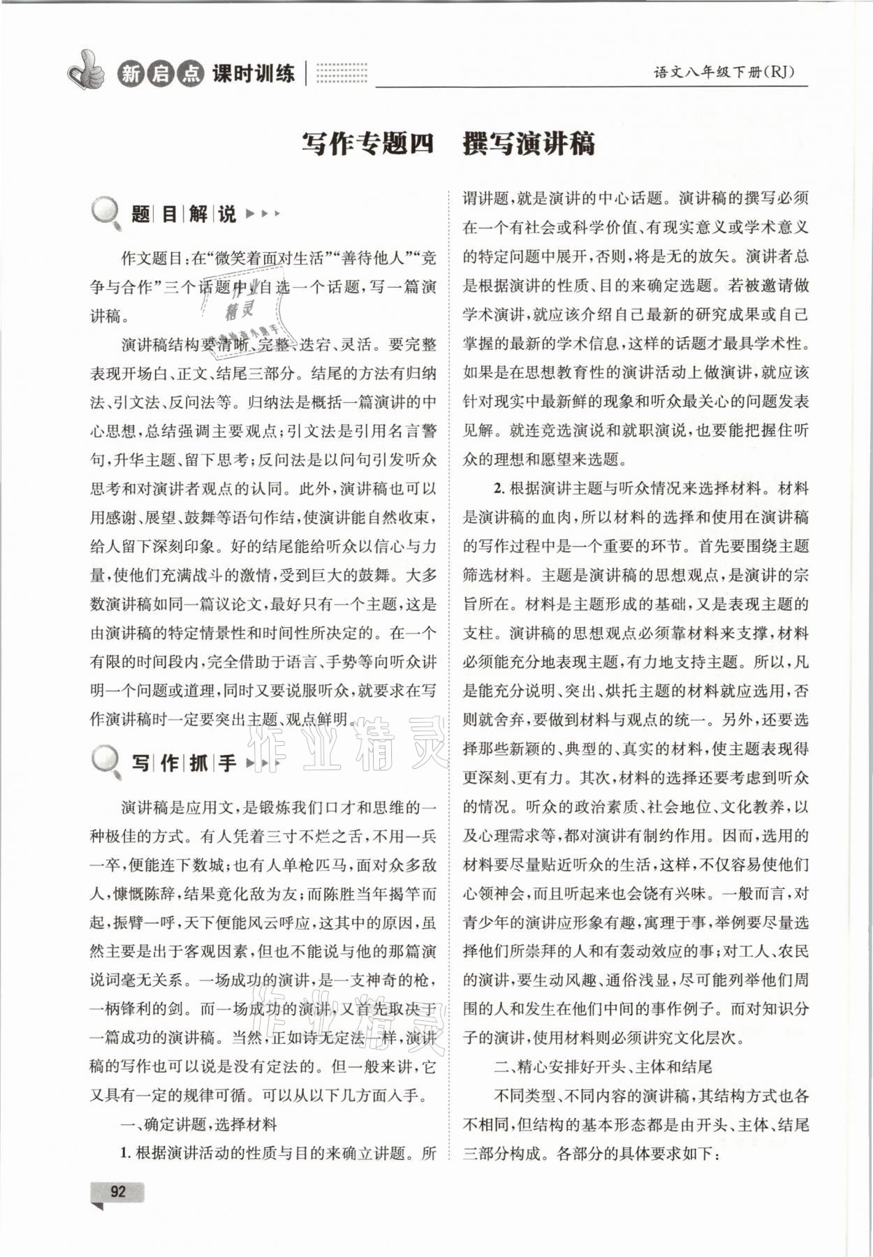 注:目前有些书本章节名称可能整理的还不是很完善,但都是按照顺序排列的,请同学们按照顺序仔细查找。练习册 2021年新启点课时训练八年级语文下册人教版 答案主要是用来给同学们做完题方便对答案用的,请勿直接抄袭。