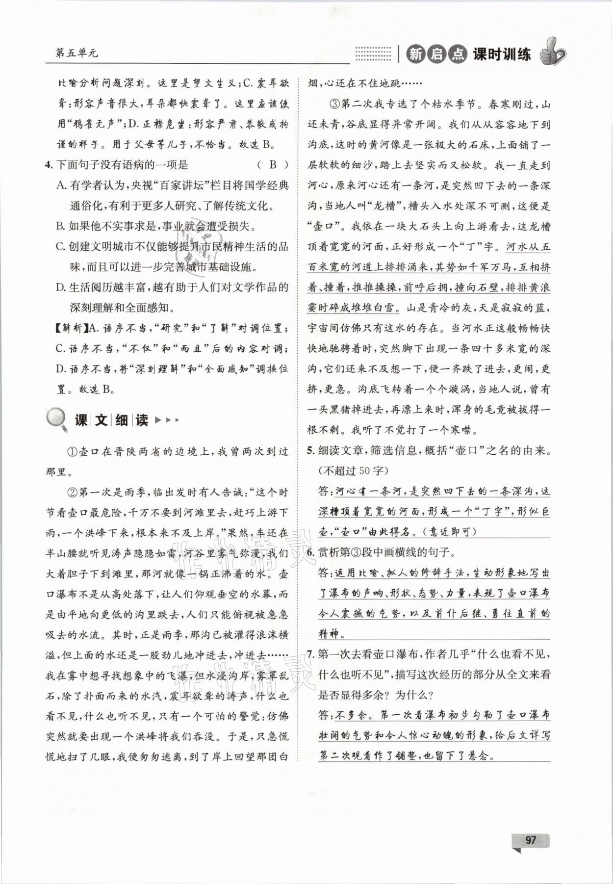 注:目前有些书本章节名称可能整理的还不是很完善,但都是按照顺序排列的,请同学们按照顺序仔细查找。练习册 2021年新启点课时训练八年级语文下册人教版 答案主要是用来给同学们做完题方便对答案用的,请勿直接抄袭。