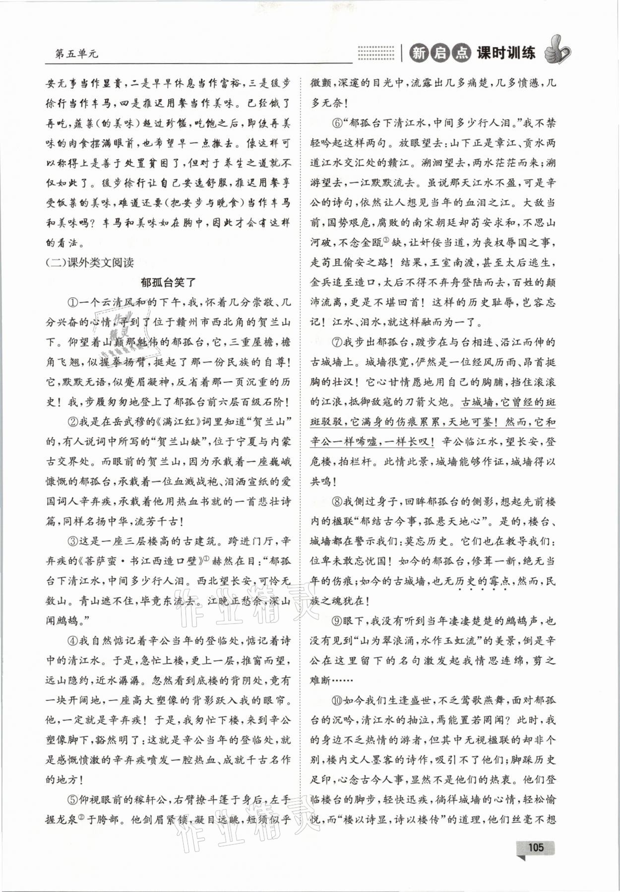 注:目前有些书本章节名称可能整理的还不是很完善,但都是按照顺序排列的,请同学们按照顺序仔细查找。练习册 2021年新启点课时训练八年级语文下册人教版 答案主要是用来给同学们做完题方便对答案用的,请勿直接抄袭。