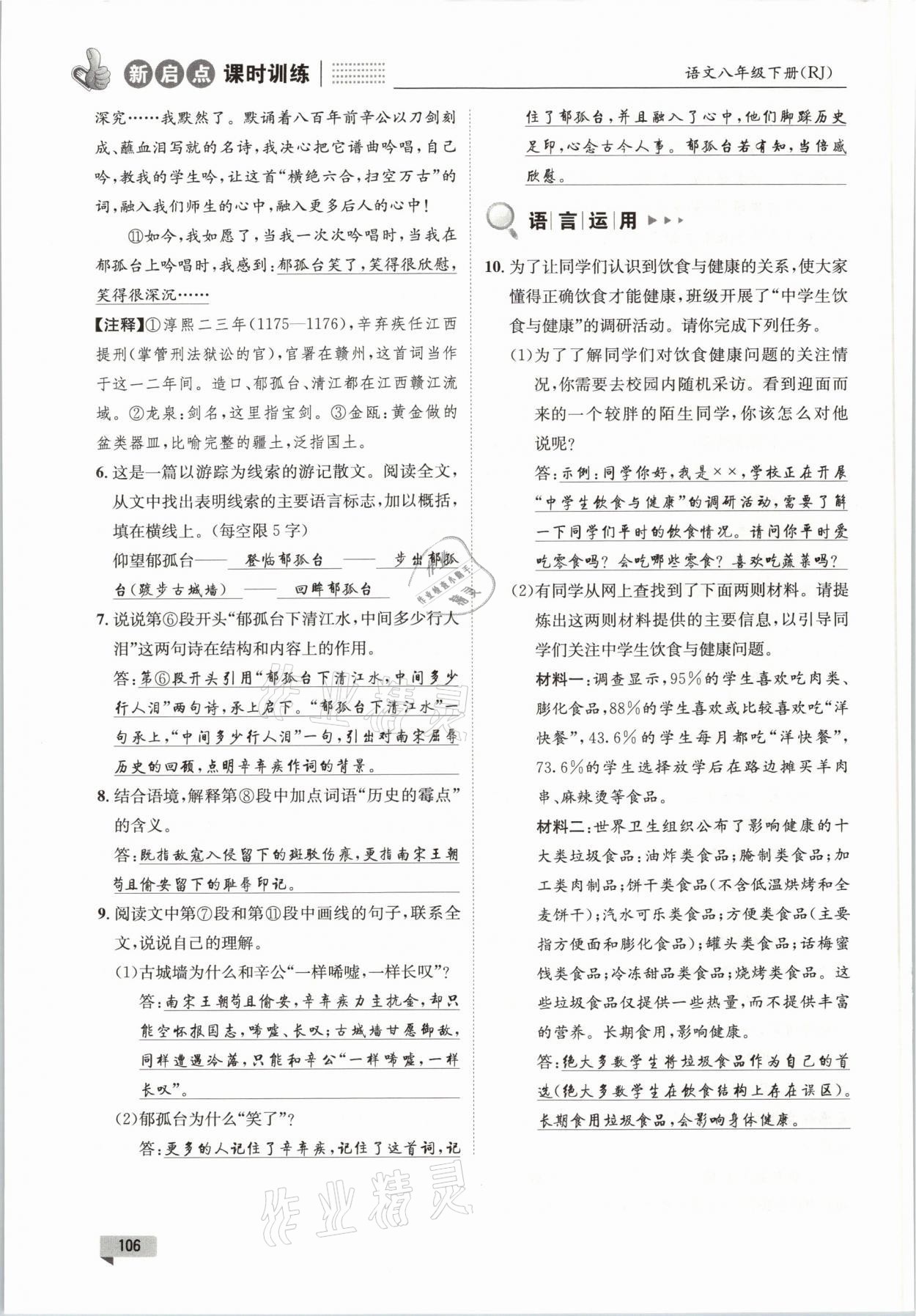 注:目前有些书本章节名称可能整理的还不是很完善,但都是按照顺序排列的,请同学们按照顺序仔细查找。练习册 2021年新启点课时训练八年级语文下册人教版 答案主要是用来给同学们做完题方便对答案用的,请勿直接抄袭。