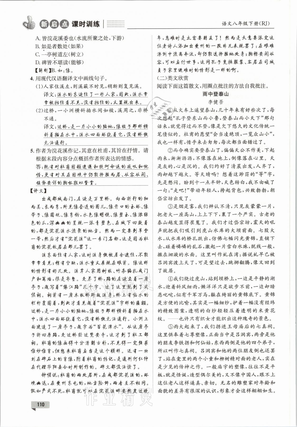 注:目前有些书本章节名称可能整理的还不是很完善,但都是按照顺序排列的,请同学们按照顺序仔细查找。练习册 2021年新启点课时训练八年级语文下册人教版 答案主要是用来给同学们做完题方便对答案用的,请勿直接抄袭。