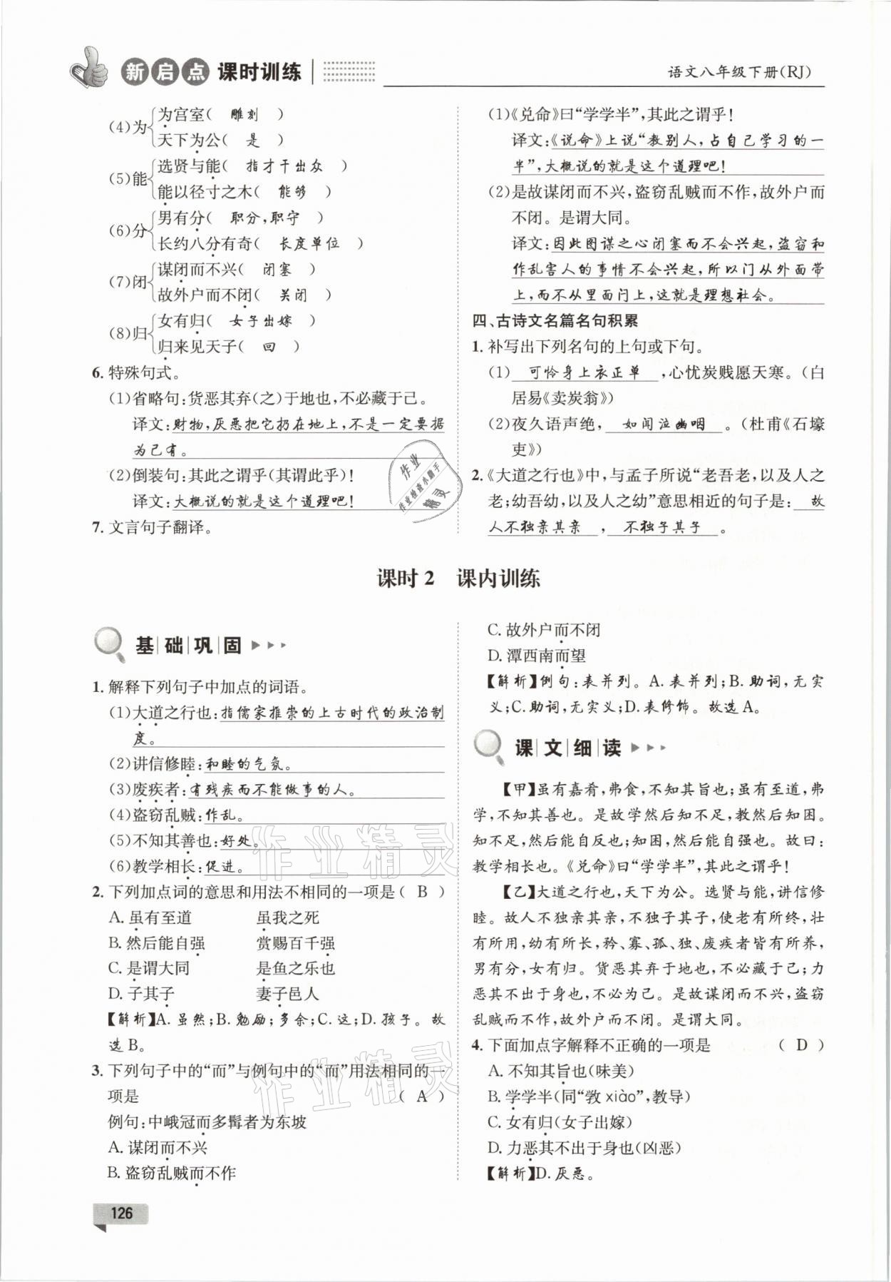 注:目前有些书本章节名称可能整理的还不是很完善,但都是按照顺序排列的,请同学们按照顺序仔细查找。练习册 2021年新启点课时训练八年级语文下册人教版 答案主要是用来给同学们做完题方便对答案用的,请勿直接抄袭。