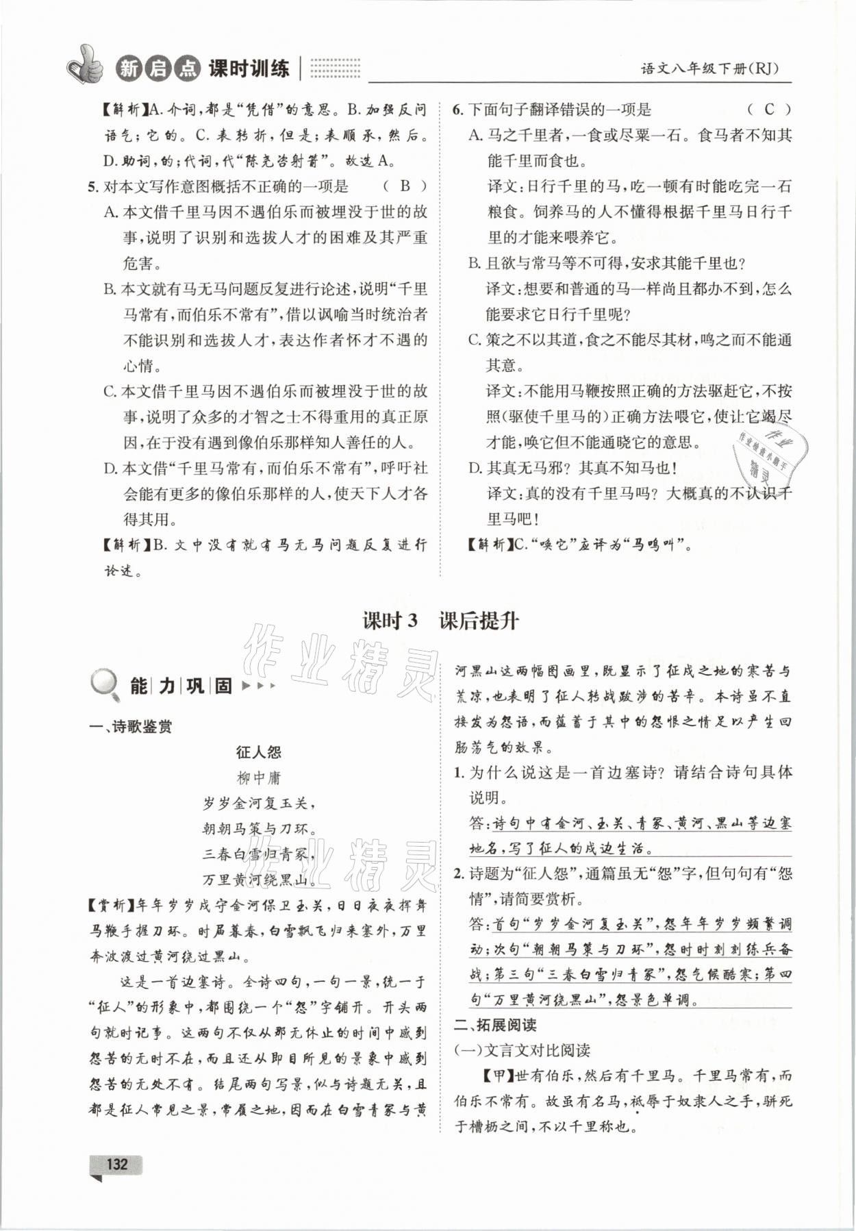 注:目前有些书本章节名称可能整理的还不是很完善,但都是按照顺序排列的,请同学们按照顺序仔细查找。练习册 2021年新启点课时训练八年级语文下册人教版 答案主要是用来给同学们做完题方便对答案用的,请勿直接抄袭。
