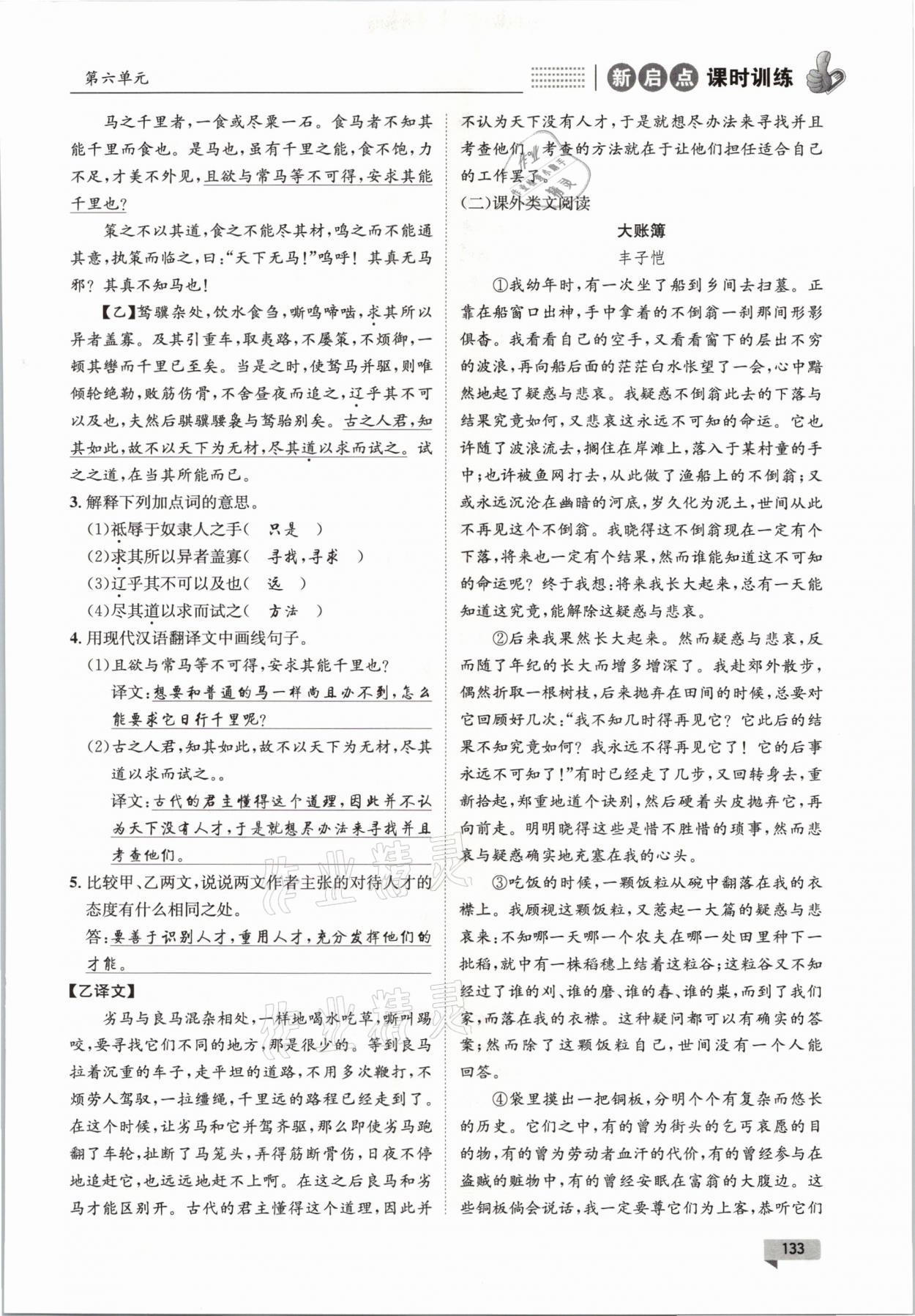 注:目前有些书本章节名称可能整理的还不是很完善,但都是按照顺序排列的,请同学们按照顺序仔细查找。练习册 2021年新启点课时训练八年级语文下册人教版 答案主要是用来给同学们做完题方便对答案用的,请勿直接抄袭。