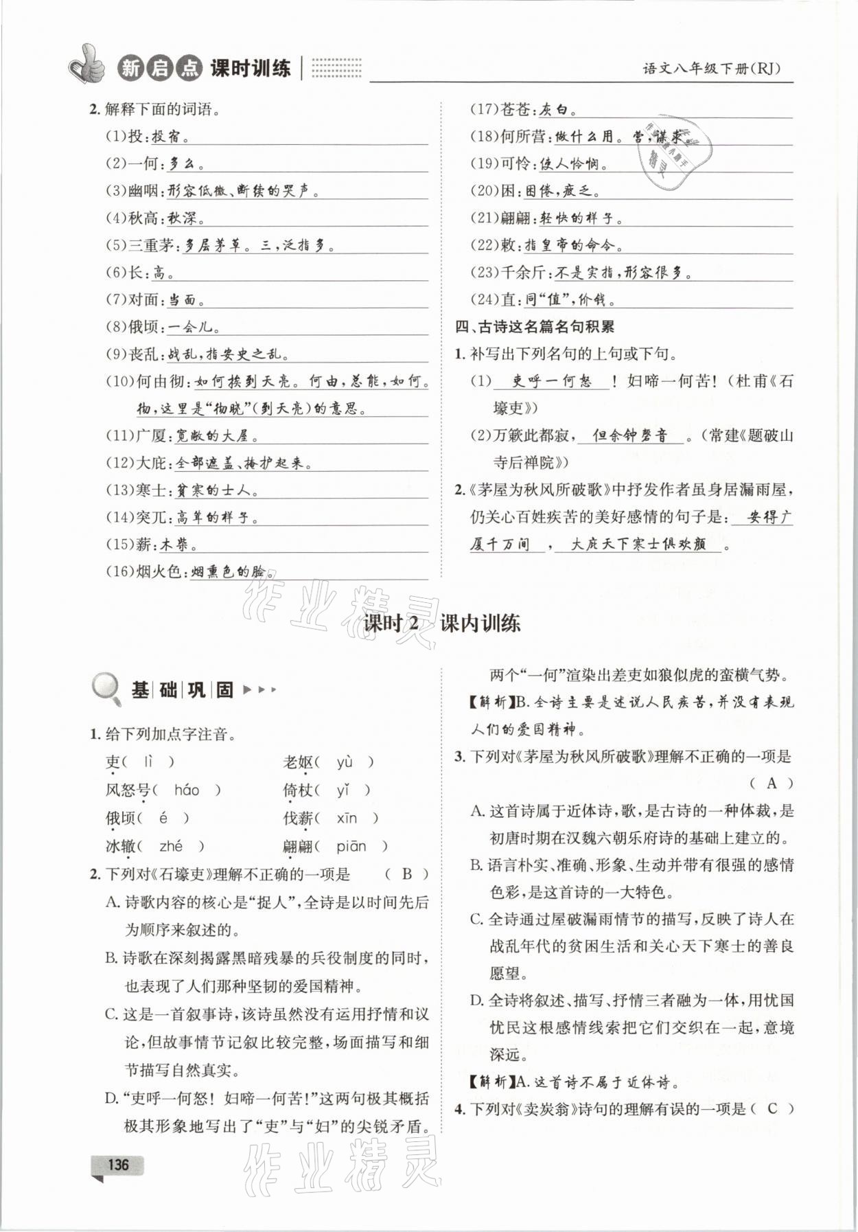 注:目前有些书本章节名称可能整理的还不是很完善,但都是按照顺序排列的,请同学们按照顺序仔细查找。练习册 2021年新启点课时训练八年级语文下册人教版 答案主要是用来给同学们做完题方便对答案用的,请勿直接抄袭。