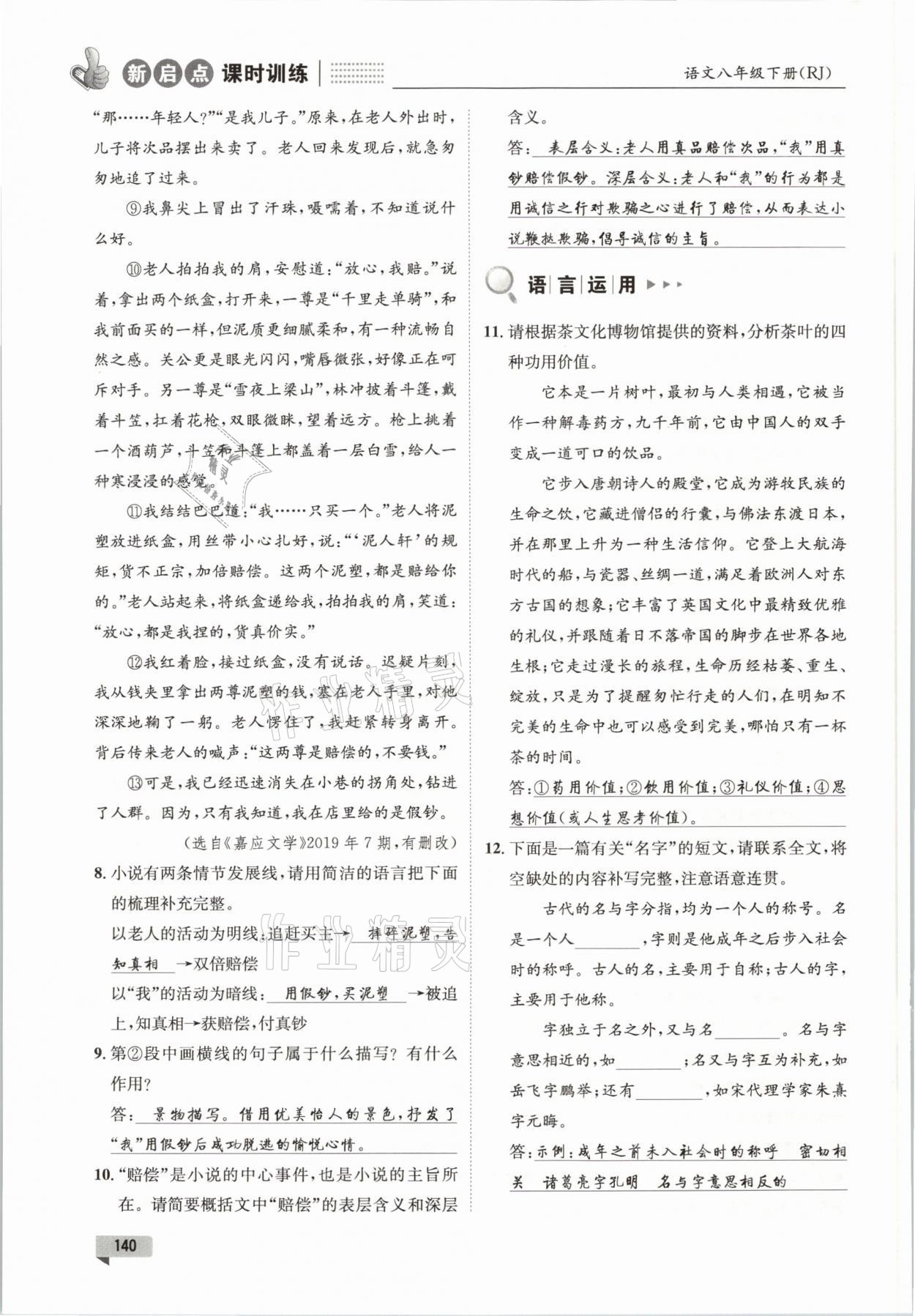 注:目前有些书本章节名称可能整理的还不是很完善,但都是按照顺序排列的,请同学们按照顺序仔细查找。练习册 2021年新启点课时训练八年级语文下册人教版 答案主要是用来给同学们做完题方便对答案用的,请勿直接抄袭。