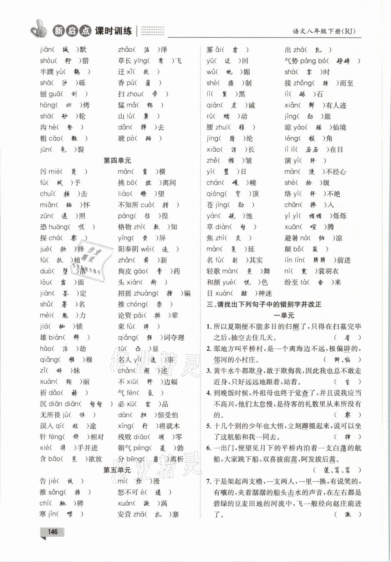 注:目前有些书本章节名称可能整理的还不是很完善,但都是按照顺序排列的,请同学们按照顺序仔细查找。练习册 2021年新启点课时训练八年级语文下册人教版 答案主要是用来给同学们做完题方便对答案用的,请勿直接抄袭。