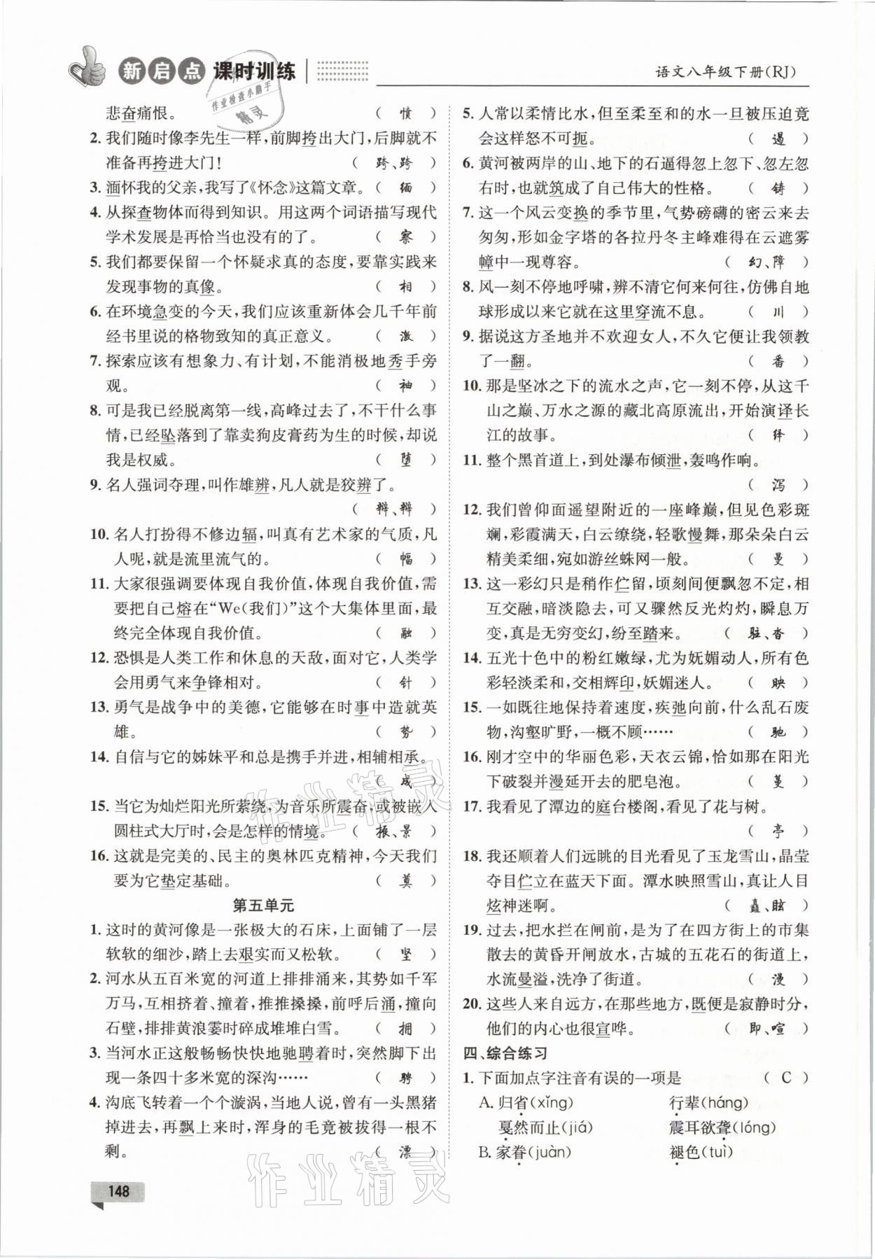 注:目前有些书本章节名称可能整理的还不是很完善,但都是按照顺序排列的,请同学们按照顺序仔细查找。练习册 2021年新启点课时训练八年级语文下册人教版 答案主要是用来给同学们做完题方便对答案用的,请勿直接抄袭。
