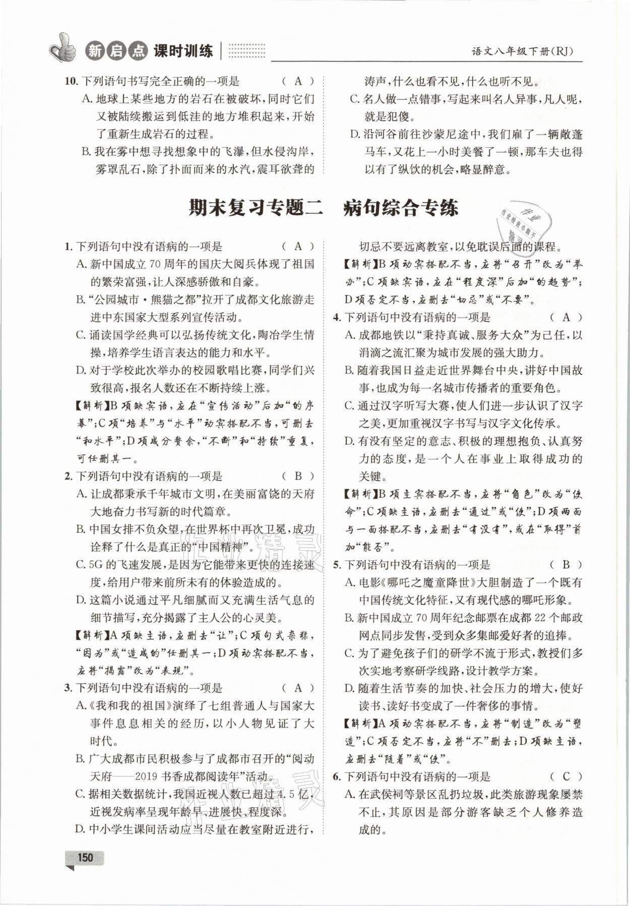 注:目前有些书本章节名称可能整理的还不是很完善,但都是按照顺序排列的,请同学们按照顺序仔细查找。练习册 2021年新启点课时训练八年级语文下册人教版 答案主要是用来给同学们做完题方便对答案用的,请勿直接抄袭。