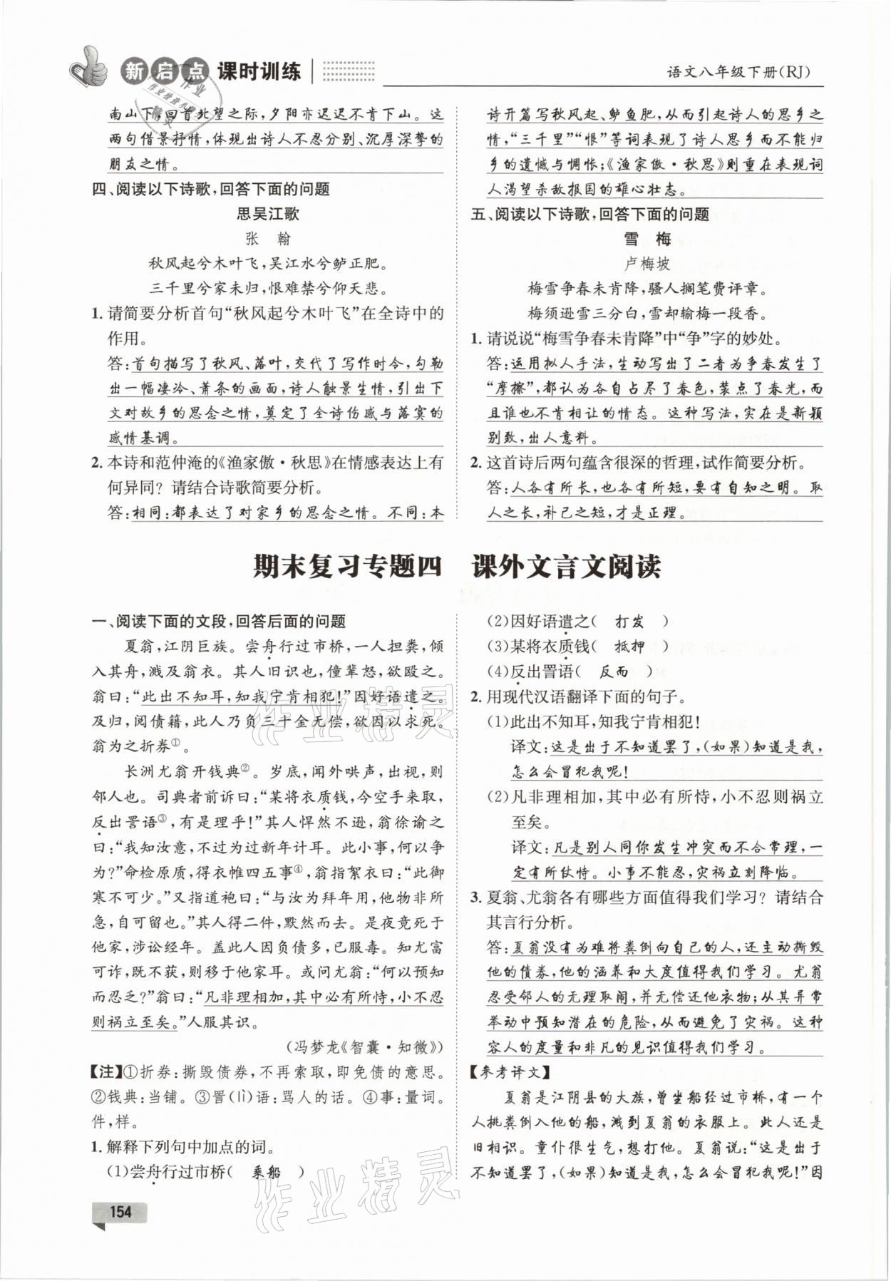 注:目前有些书本章节名称可能整理的还不是很完善,但都是按照顺序排列的,请同学们按照顺序仔细查找。练习册 2021年新启点课时训练八年级语文下册人教版 答案主要是用来给同学们做完题方便对答案用的,请勿直接抄袭。