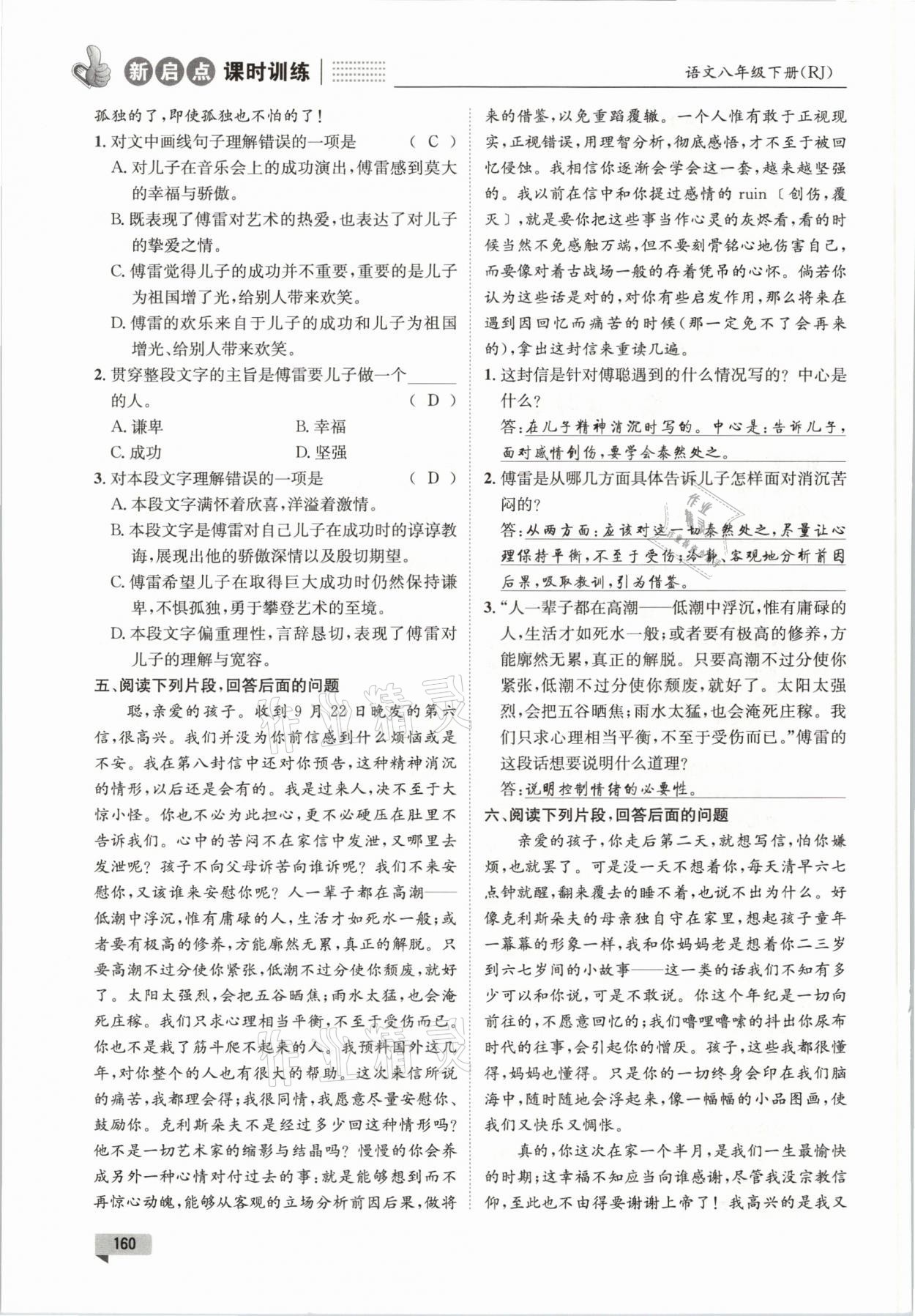 注:目前有些书本章节名称可能整理的还不是很完善,但都是按照顺序排列的,请同学们按照顺序仔细查找。练习册 2021年新启点课时训练八年级语文下册人教版 答案主要是用来给同学们做完题方便对答案用的,请勿直接抄袭。