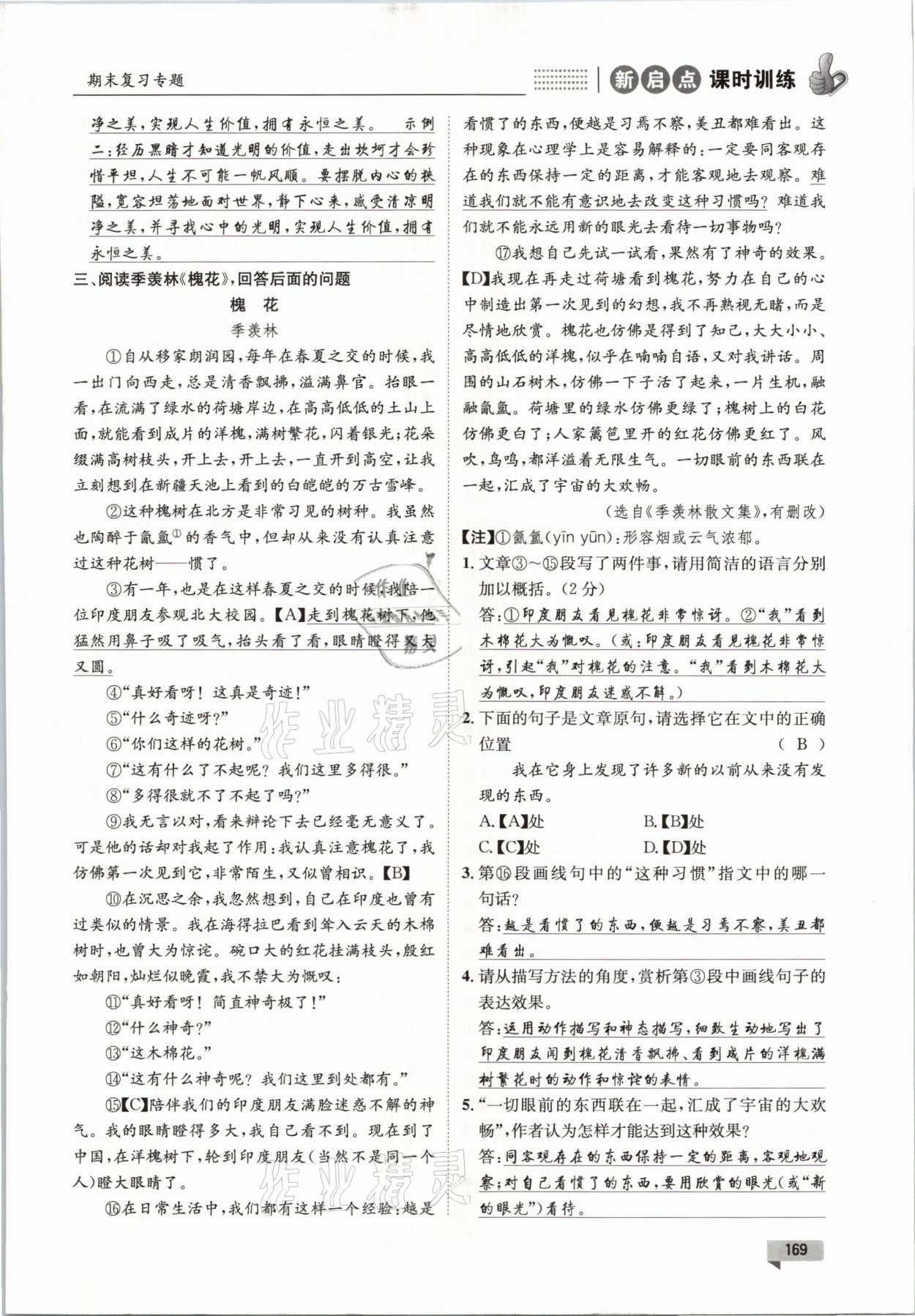 注:目前有些书本章节名称可能整理的还不是很完善,但都是按照顺序排列的,请同学们按照顺序仔细查找。练习册 2021年新启点课时训练八年级语文下册人教版 答案主要是用来给同学们做完题方便对答案用的,请勿直接抄袭。