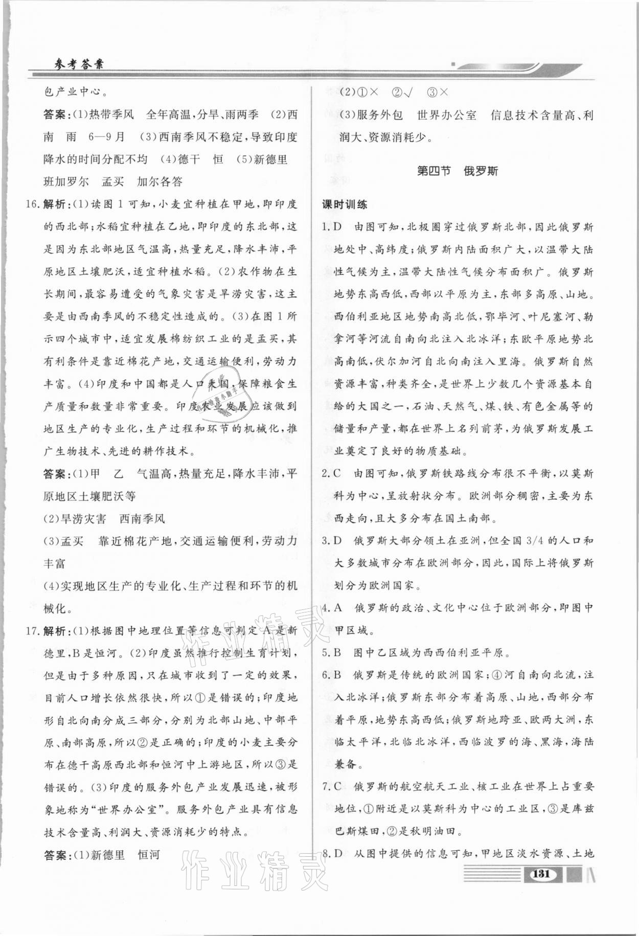 注:目前有些书本章节名称可能整理的还不是很完善,但都是按照顺序排列的,请同学们按照顺序仔细查找。练习册 2021年全解全析七年级地理下册人教版四川大学出版社 答案主要是用来给同学们做完题方便对答案用的,请勿直接抄袭。