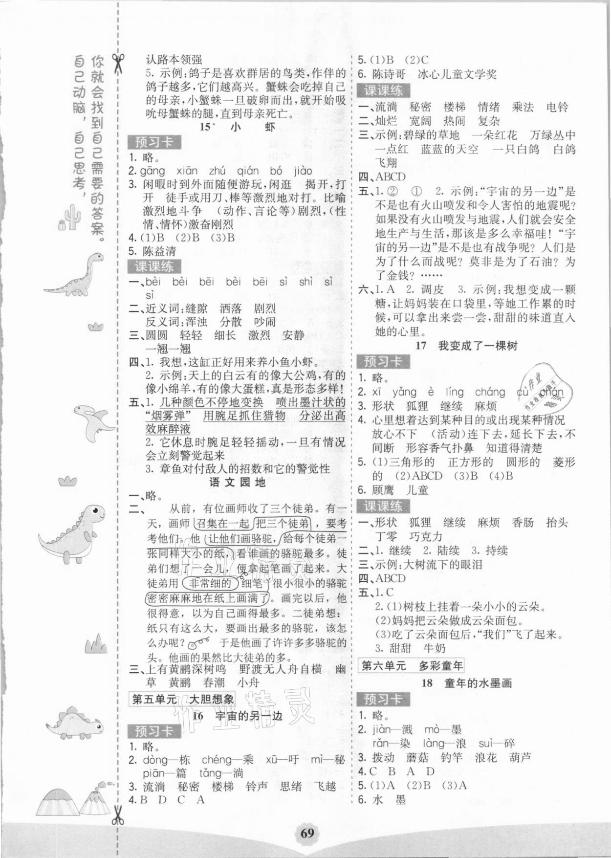 注:目前有些书本章节名称可能整理的还不是很完善,但都是按照顺序排列的,请同学们按照顺序仔细查找。练习册 2021年七彩课堂三年级语文下册人教版安徽专版 答案主要是用来给同学们做完题方便对答案用的,请勿直接抄袭。