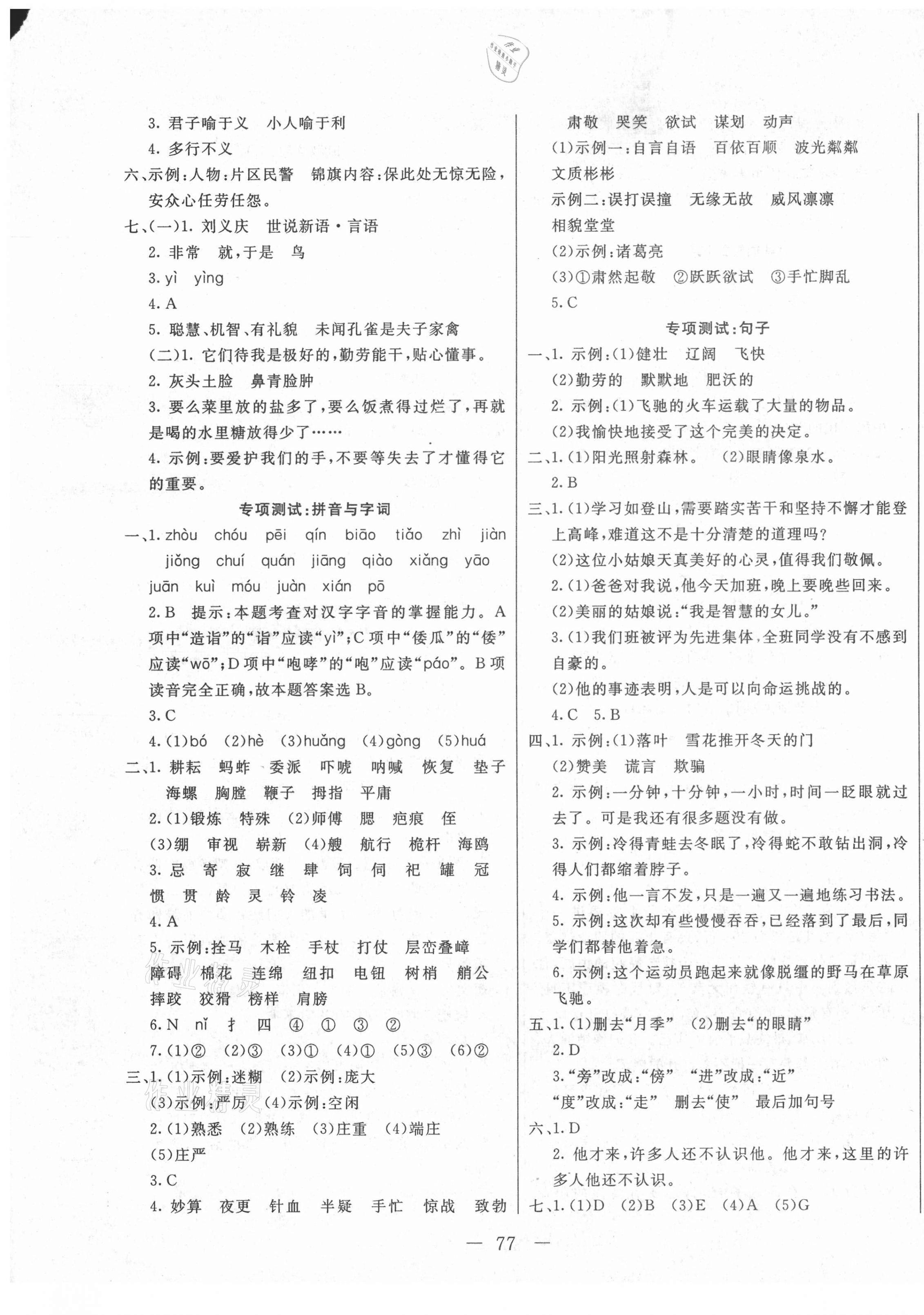 注:目前有些书本章节名称可能整理的还不是很完善,但都是按照顺序排列的,请同学们按照顺序仔细查找。练习册 2021年冲刺100分全程密卷五年级语文下册人教版 答案主要是用来给同学们做完题方便对答案用的,请勿直接抄袭。