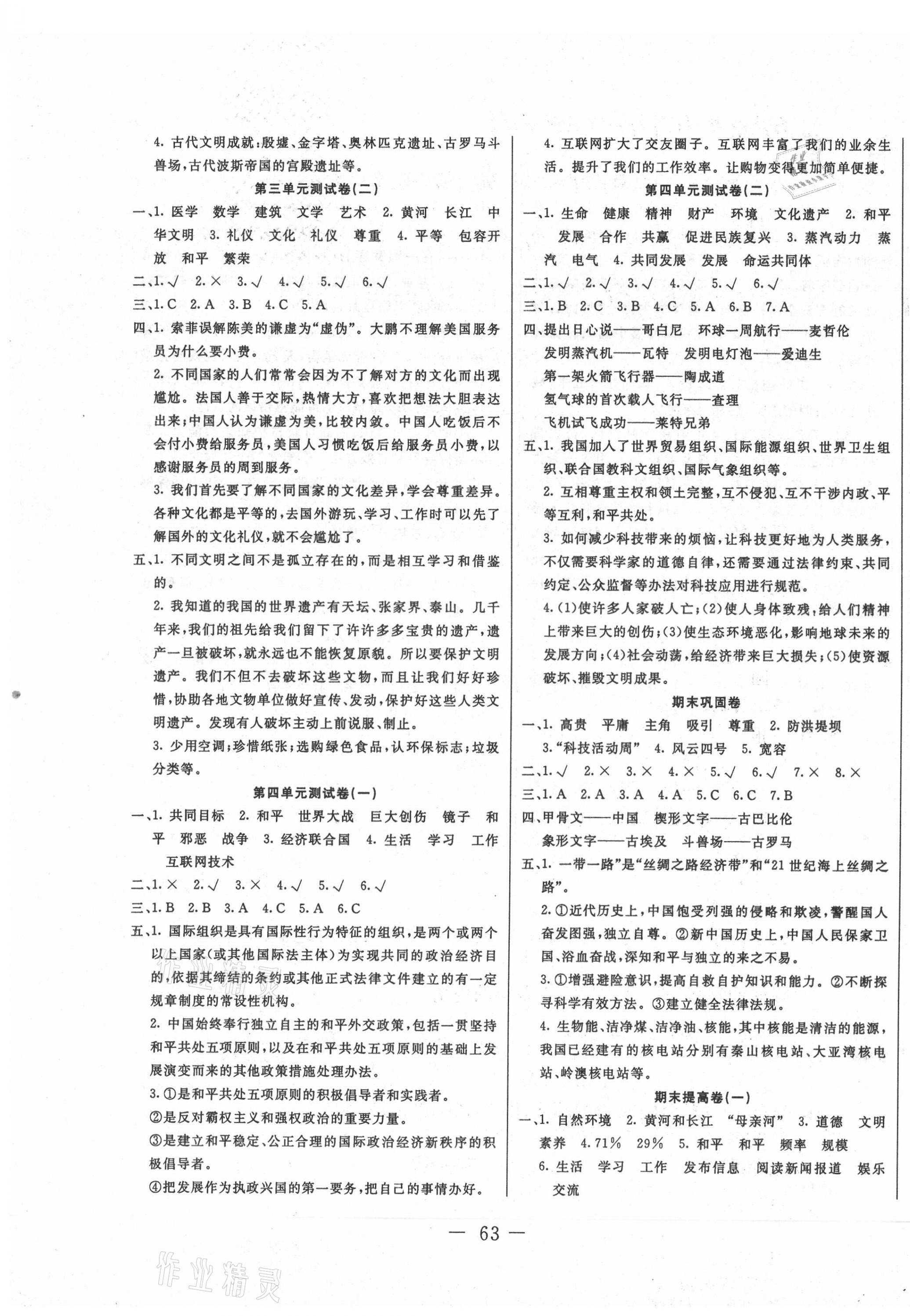 注:目前有些书本章节名称可能整理的还不是很完善,但都是按照顺序排列的,请同学们按照顺序仔细查找。练习册 2021年赢课堂单元测试卷六年级道德与法治下册人教版 答案主要是用来给同学们做完题方便对答案用的,请勿直接抄袭。