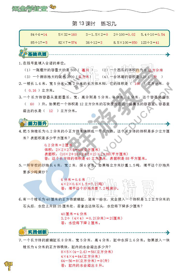 注:目前有些书本章节名称可能整理的还不是很完善,但都是按照顺序排列的,请同学们按照顺序仔细查找。练习册 2021年双全学业堂五年级数学下册人教版 答案主要是用来给同学们做完题方便对答案用的,请勿直接抄袭。