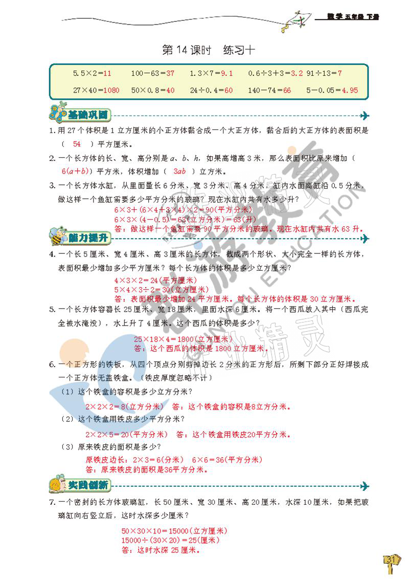 注:目前有些书本章节名称可能整理的还不是很完善,但都是按照顺序排列的,请同学们按照顺序仔细查找。练习册 2021年双全学业堂五年级数学下册人教版 答案主要是用来给同学们做完题方便对答案用的,请勿直接抄袭。