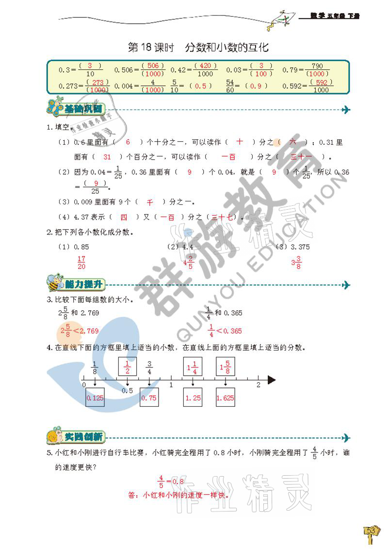注:目前有些书本章节名称可能整理的还不是很完善,但都是按照顺序排列的,请同学们按照顺序仔细查找。练习册 2021年双全学业堂五年级数学下册人教版 答案主要是用来给同学们做完题方便对答案用的,请勿直接抄袭。