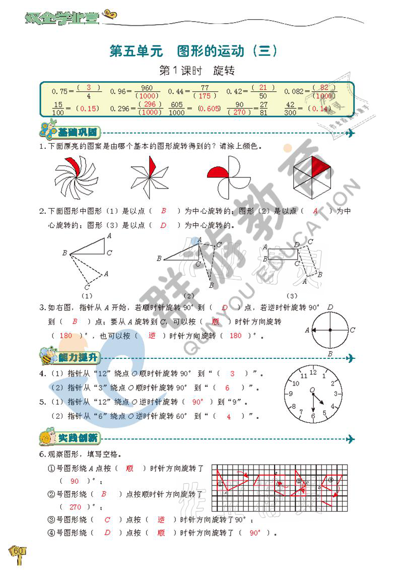 注:目前有些书本章节名称可能整理的还不是很完善,但都是按照顺序排列的,请同学们按照顺序仔细查找。练习册 2021年双全学业堂五年级数学下册人教版 答案主要是用来给同学们做完题方便对答案用的,请勿直接抄袭。