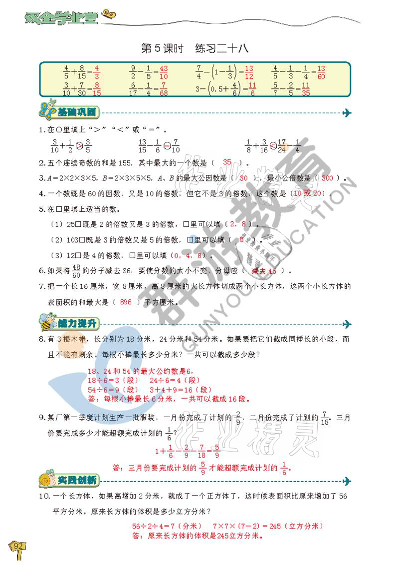 注:目前有些书本章节名称可能整理的还不是很完善,但都是按照顺序排列的,请同学们按照顺序仔细查找。练习册 2021年双全学业堂五年级数学下册人教版 答案主要是用来给同学们做完题方便对答案用的,请勿直接抄袭。