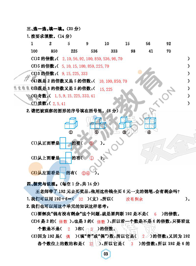 注:目前有些书本章节名称可能整理的还不是很完善,但都是按照顺序排列的,请同学们按照顺序仔细查找。练习册 2021年双全学业堂五年级数学下册人教版 答案主要是用来给同学们做完题方便对答案用的,请勿直接抄袭。