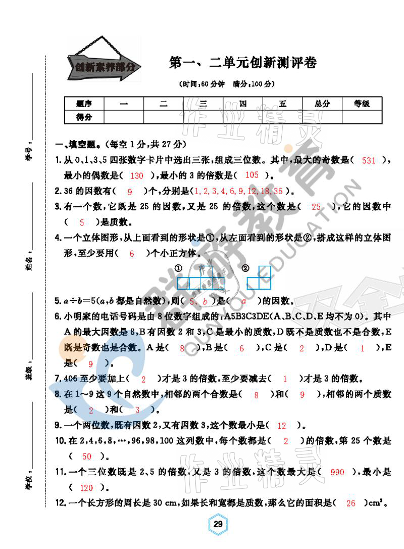 注:目前有些书本章节名称可能整理的还不是很完善,但都是按照顺序排列的,请同学们按照顺序仔细查找。练习册 2021年双全学业堂五年级数学下册人教版 答案主要是用来给同学们做完题方便对答案用的,请勿直接抄袭。