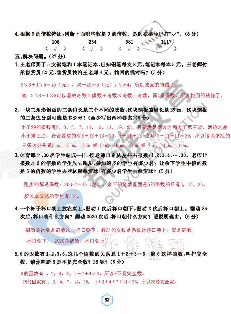 注:目前有些书本章节名称可能整理的还不是很完善,但都是按照顺序排列的,请同学们按照顺序仔细查找。练习册 2021年双全学业堂五年级数学下册人教版 答案主要是用来给同学们做完题方便对答案用的,请勿直接抄袭。