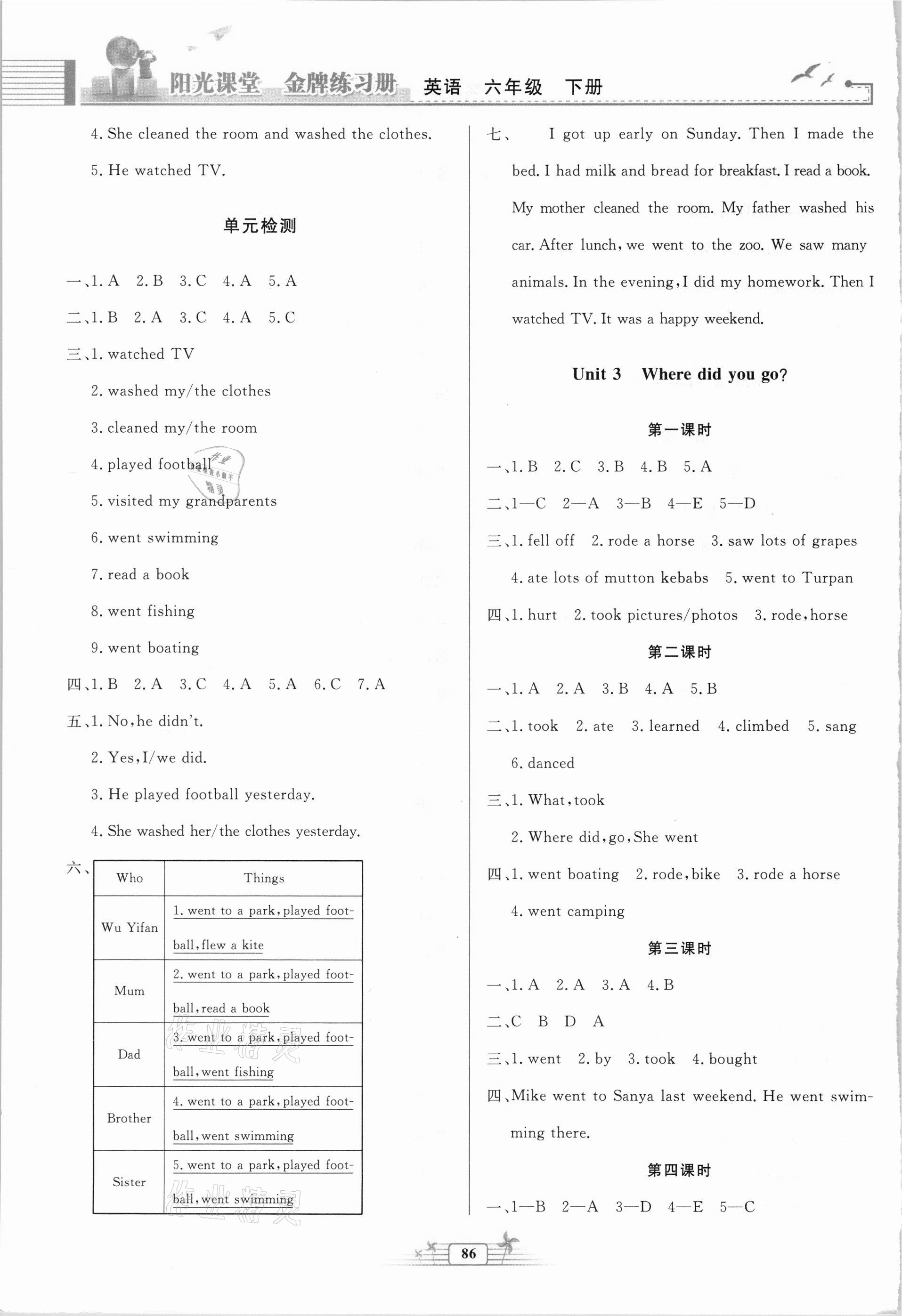 注:目前有些书本章节名称可能整理的还不是很完善,但都是按照顺序排列的,请同学们按照顺序仔细查找。练习册 2021年阳光课堂金牌练习册六年级英语下册人教版河北专版 答案主要是用来给同学们做完题方便对答案用的,请勿直接抄袭。