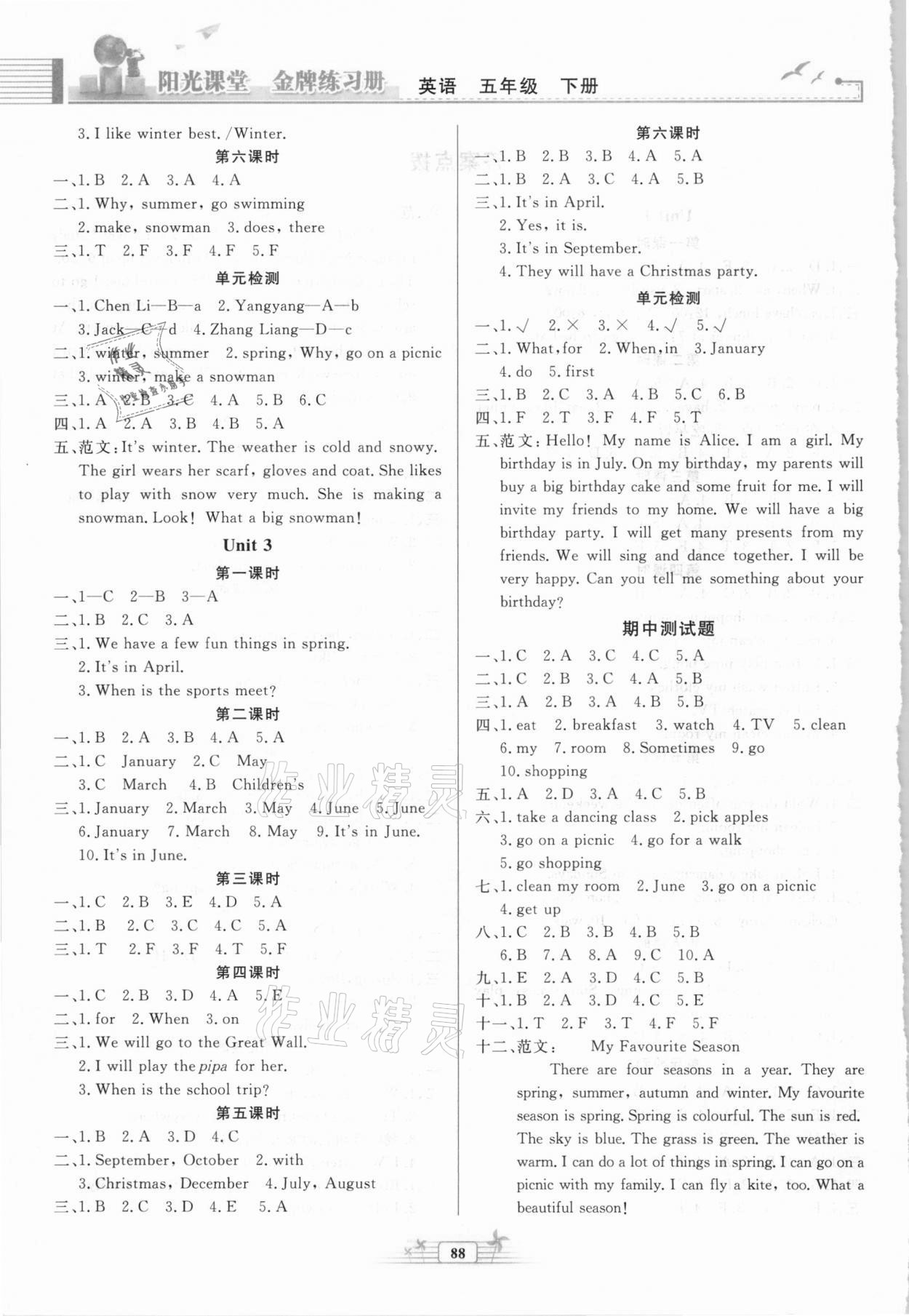 注:目前有些书本章节名称可能整理的还不是很完善,但都是按照顺序排列的,请同学们按照顺序仔细查找。练习册 2021年阳光课堂金牌练习册五年级英语下册人教版河北专版 答案主要是用来给同学们做完题方便对答案用的,请勿直接抄袭。
